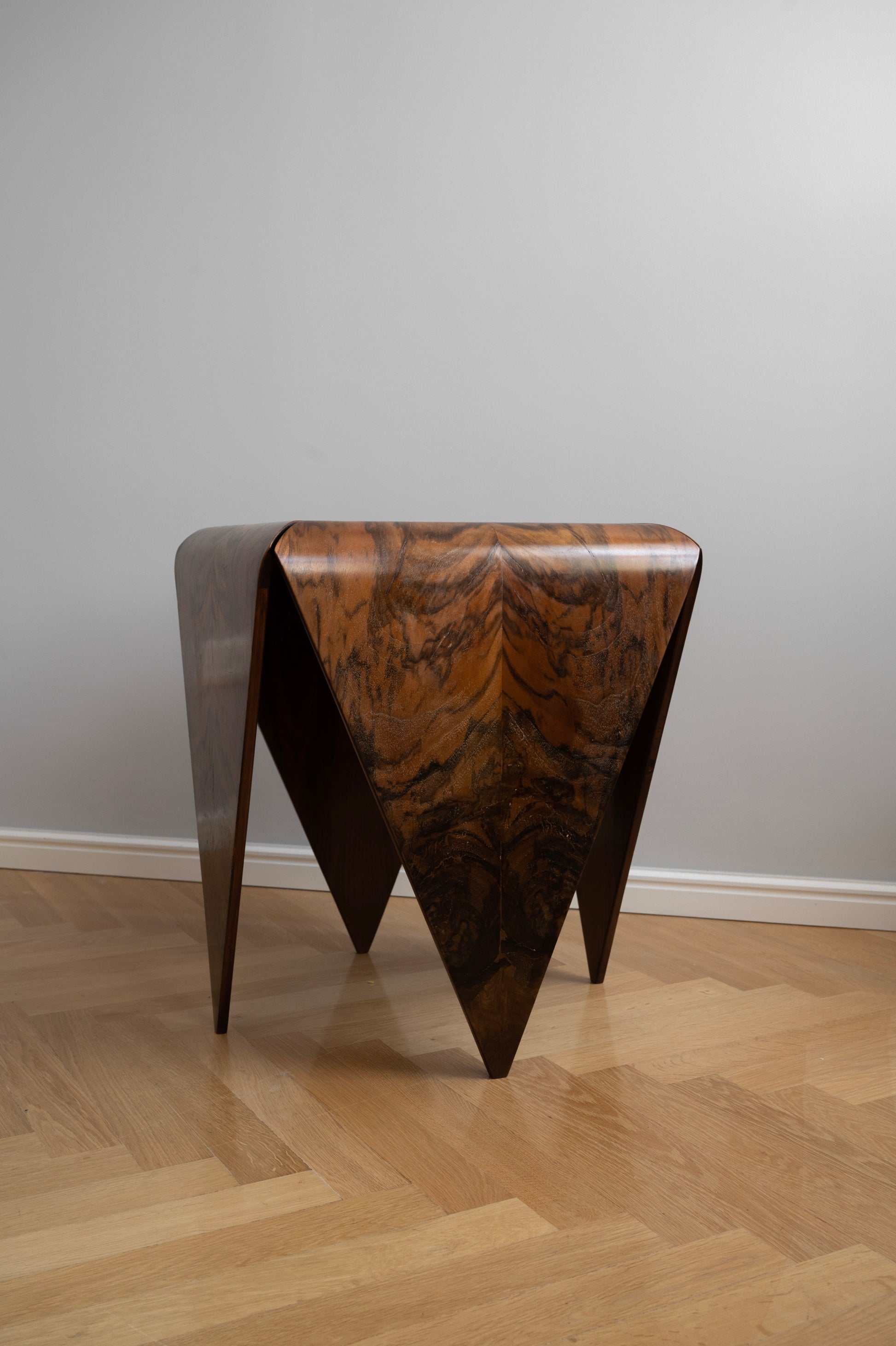 Tento elegantní brazilský stolek z 60. let nese charakteristický rukopis polsko-brazilského architekta a designéra Jorgeho Zalszupina. Model Petalas zaujme svojí dynamickou formou, která evokuje rozkvetlý květ, a nádhernou palisandrovou dýhou, která dodává každému kusu jedinečný vzhled. Nadčasový design a precizní řemeslné zpracování dělají z tohoto stolku výjimečný interiérový doplněk.