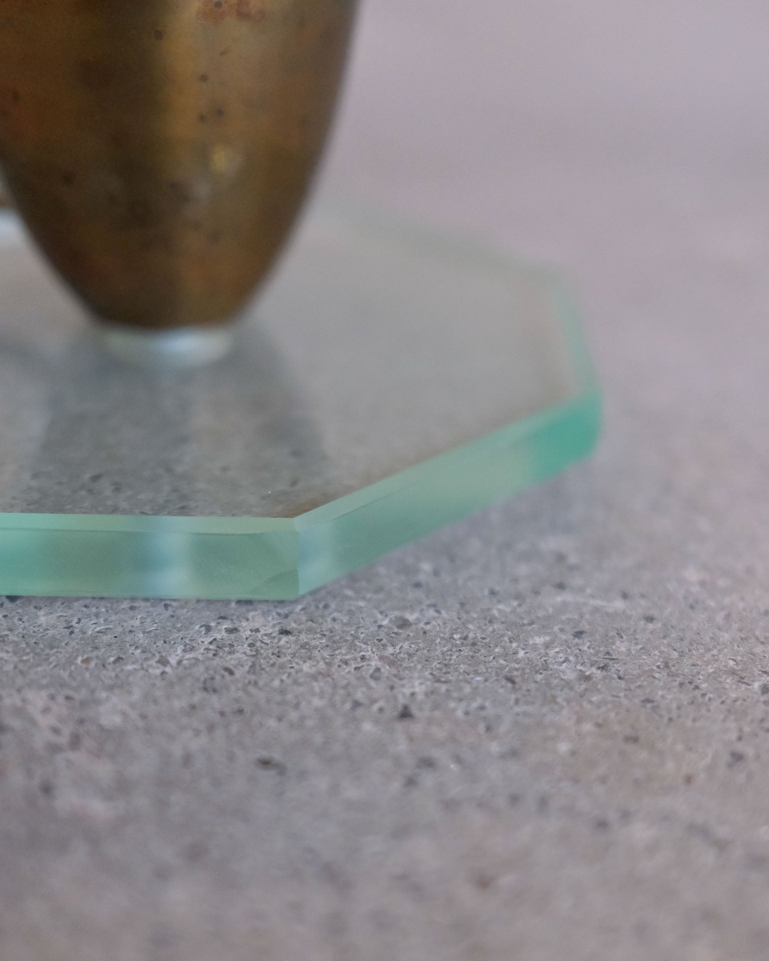 Italské lampy mají mosazné tělo a skleněný podstavec ve tvaru oktagonu. Stínítka mají z opálového matného skla bílé barvy. Mají natažen nový kabel a vypínač. ;Zrepasovány jsou i objímky.K dispozici je jeden kus.