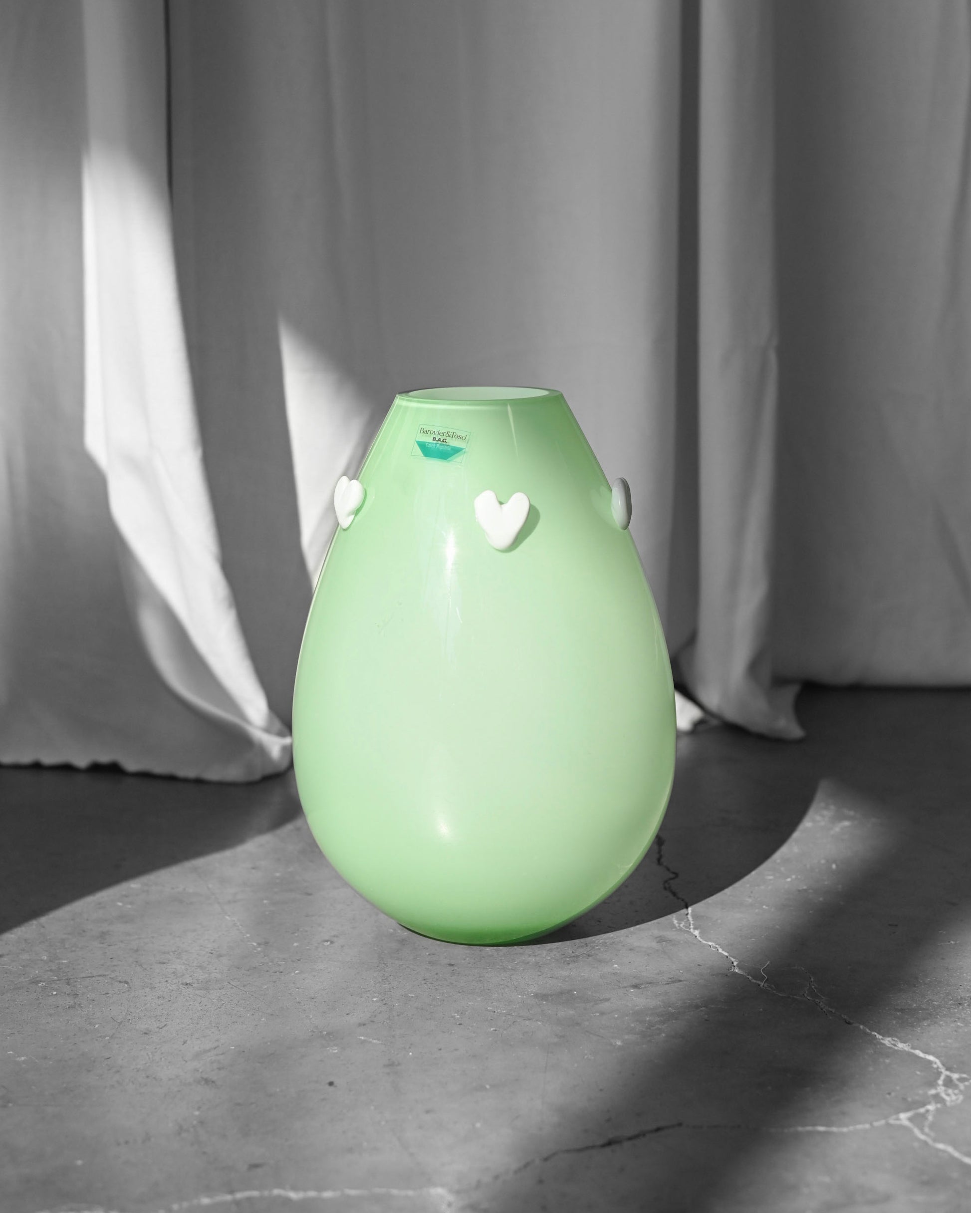Váza byla vyrobena v české sklárně MAG v 90. letech. Tuto sklárnu koupila známá italská společnost Barovier&Toso. Váza je značena nálepkou, nebyla nikdy používána a je ve 100% stavu.