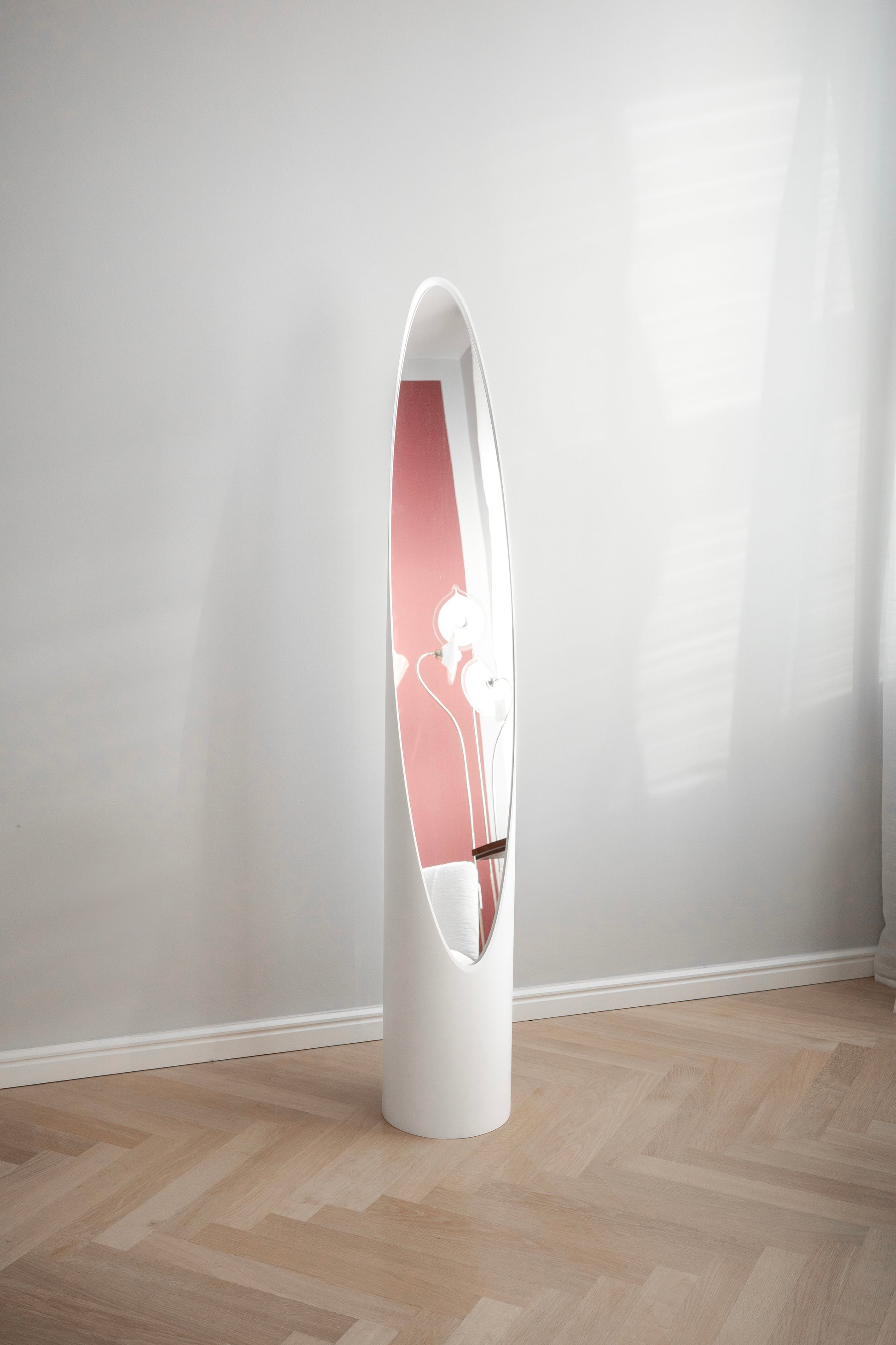 Bílé stojící zrcadlo „Lipstick“ od Rodolfa Bonetta. Zrcadlo „Lipstick“ navrženo Rodolfem Bonettem, Itálie, 1970. léta. Skvělý nadčasový design. V dobrém stavu. Máme dva kusy ve stejné barvě – jeden je k dispozici v našem studiu v Bratislavě, druhý v Praze.