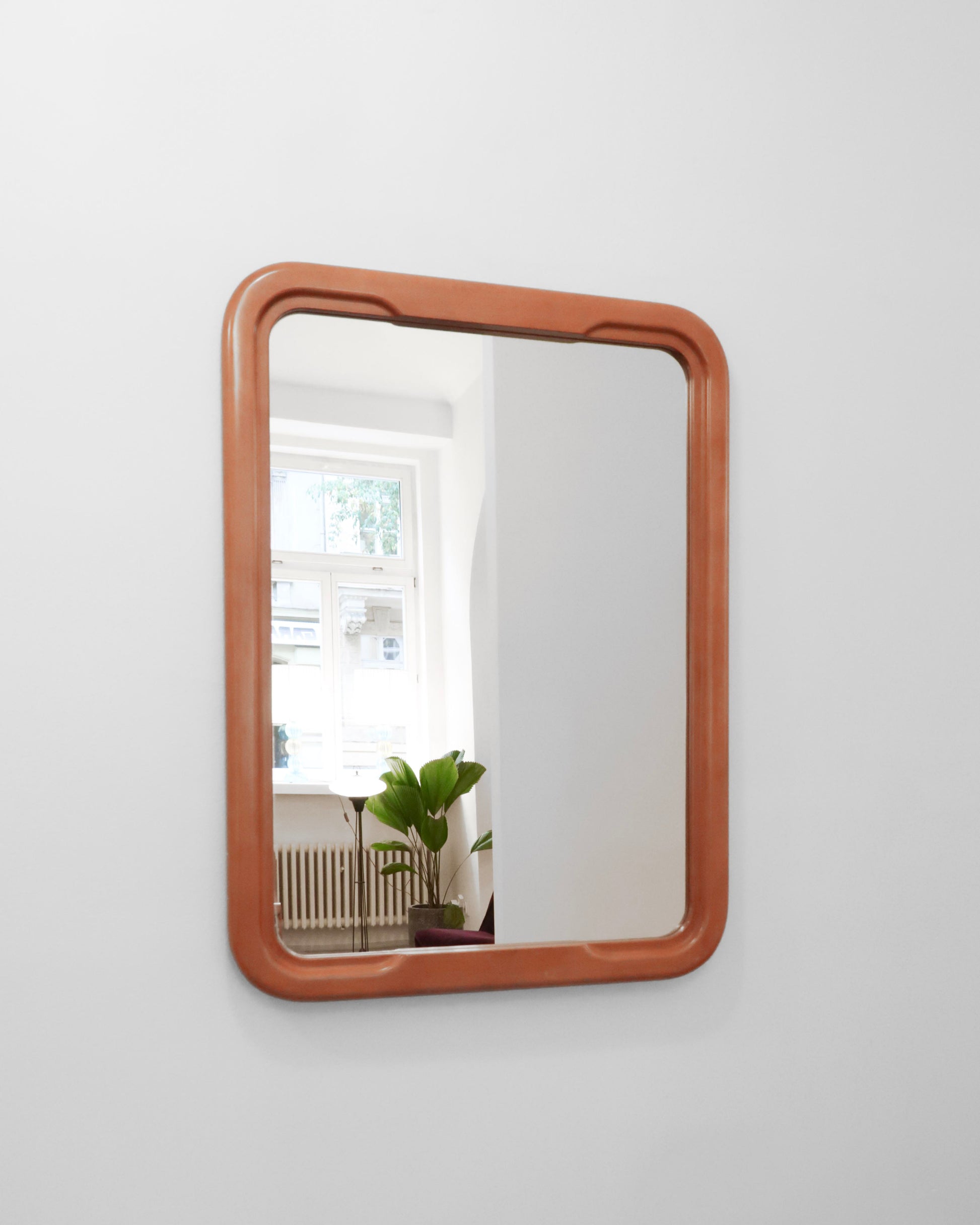 Zrcadlo jsme našli během našich cest v Itálii. Předpokládáme, že pochází z 80. let. Zrcadlo je velké a má krásně zaoblené organické tvary. Rám je vyroben ze dřeva, má jemnou patinu.