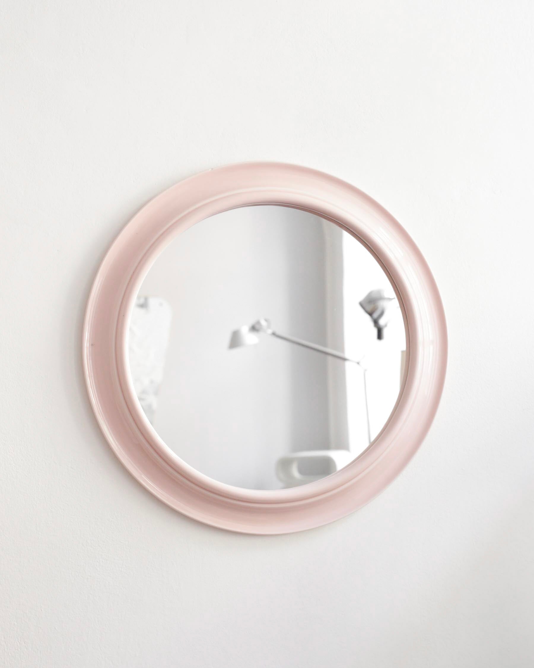 Ne často vídáme rám zrcadla z keramiky a ještě k tomu v takové krásné jemně růžové barvě. Zrcadlo jsme dovezli z Itálie a je ve velmi dobrém stavu. Na rámu je jeden malý oťuk, běžným okol minimálně viditelný.