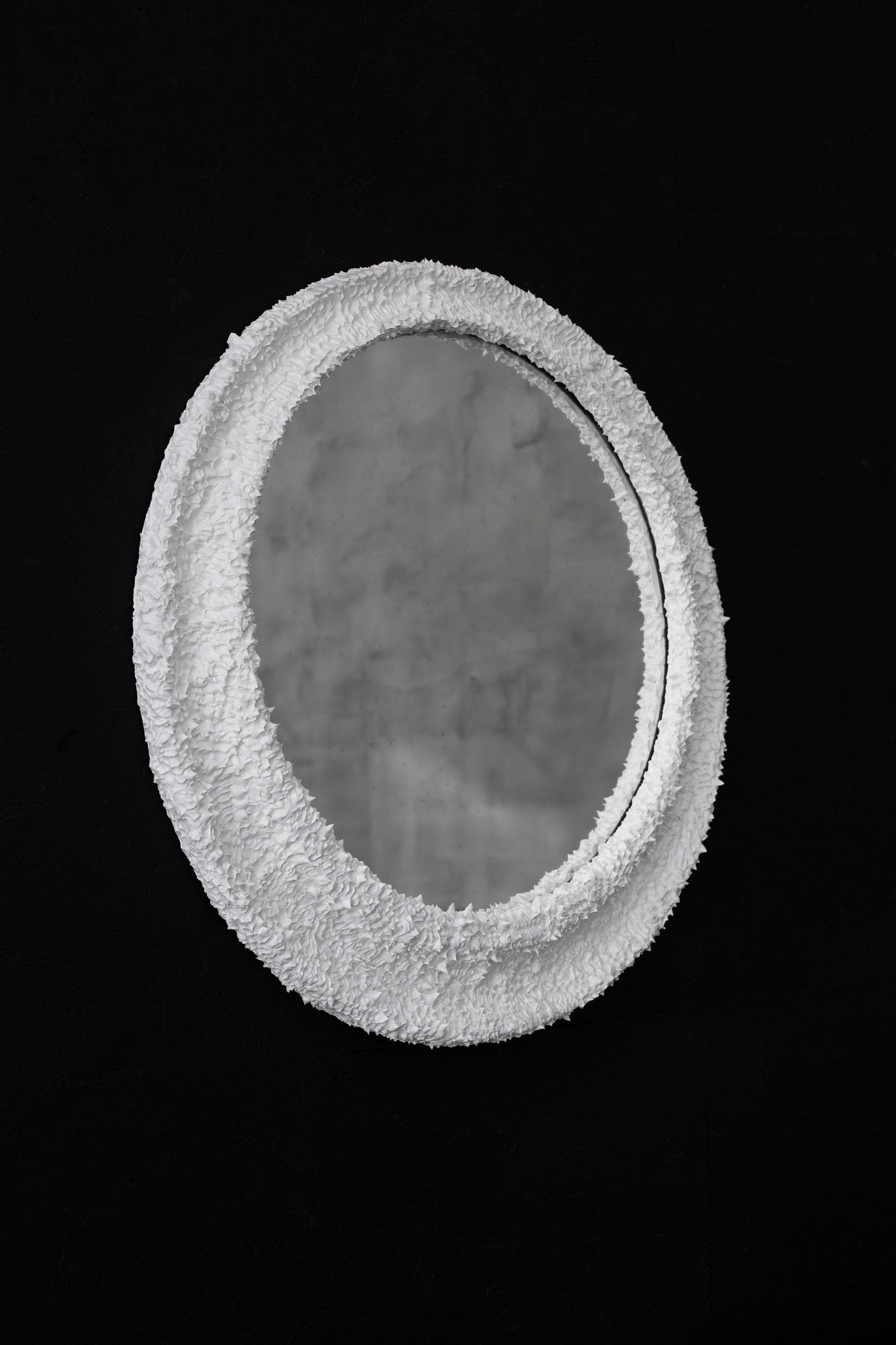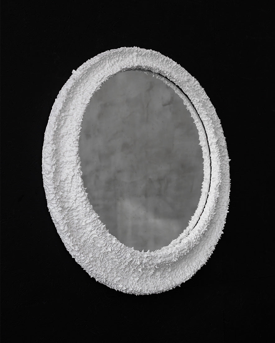 Vintage zrcadlo dotvořila umělkyně Evgenia Kazarezova, tvořící pod značkou ZHENI. Starý vintage kus, nesplňující kritéria dnešního světa ženoucího se za dokonalostí, byl přetvořen. Ne však renovací jeho rámu nebo vyříznutím nového skla, jak to obvykle děláme. Ale nanesením několika vrstev materiálu pod taktovkou Evgenie. Zrcadla už nejsou jen zrcadly ale i uměleckými objekty, solitéry v interiéru. Koncept vytvoření série pěti zrcadel vznikl při vzájemné debatě Evgenie a Vlaďy Ilavské, zakladatelce studia LAVISH.