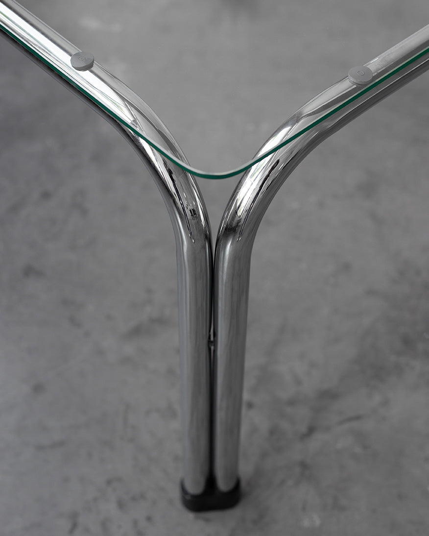 The Kodreta company produced bent metal furniture in Myjava for many years. A simple but well-thought-out construction, designed by Viliam Chlebo. The glass is newly cut. The table has not been used, only stored.