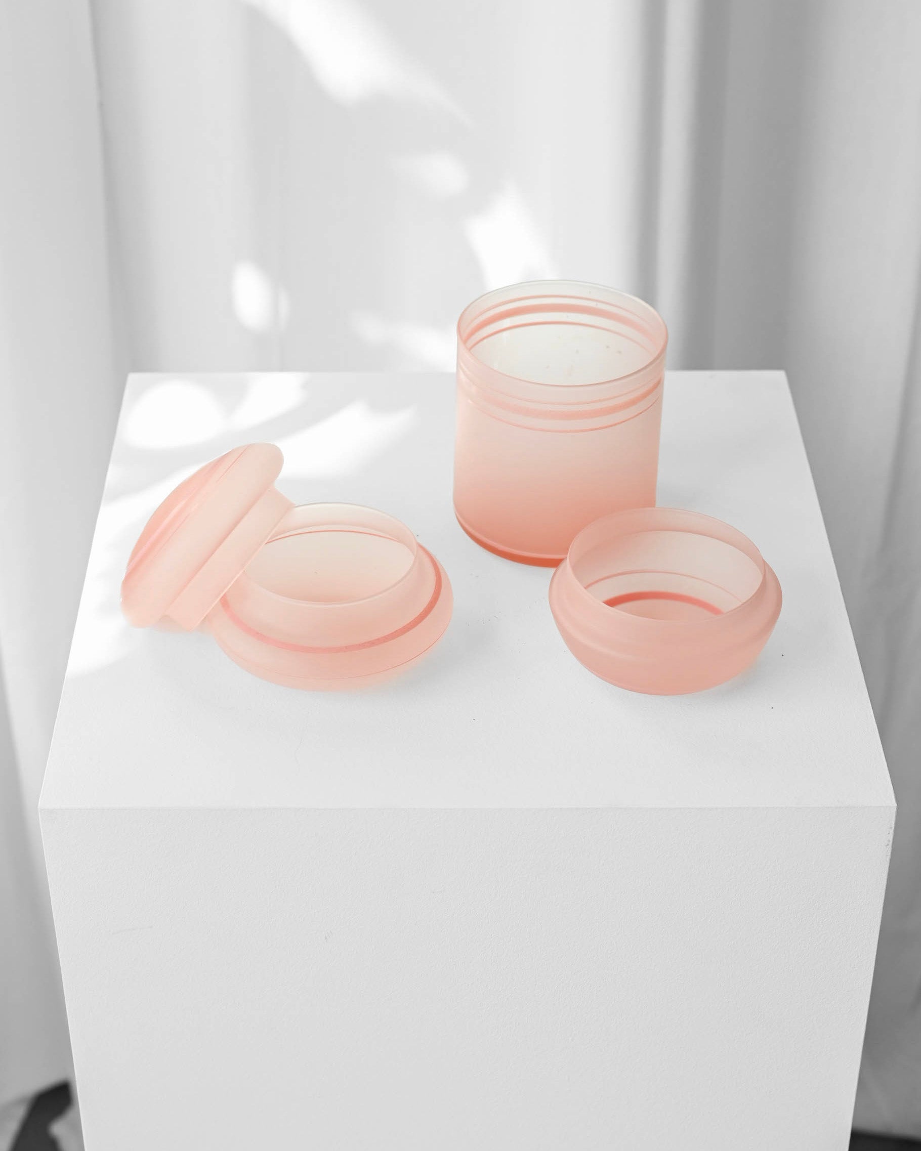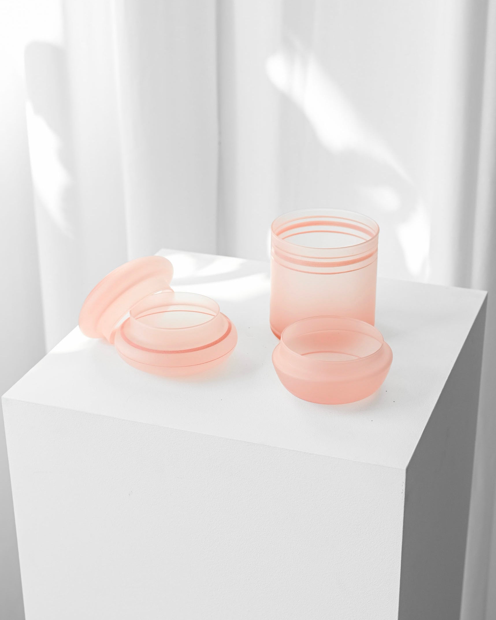 We found the jars in Italy at a flea market. We were enchanted by their color, shape, and soft frosted glass. They are in excellent condition.