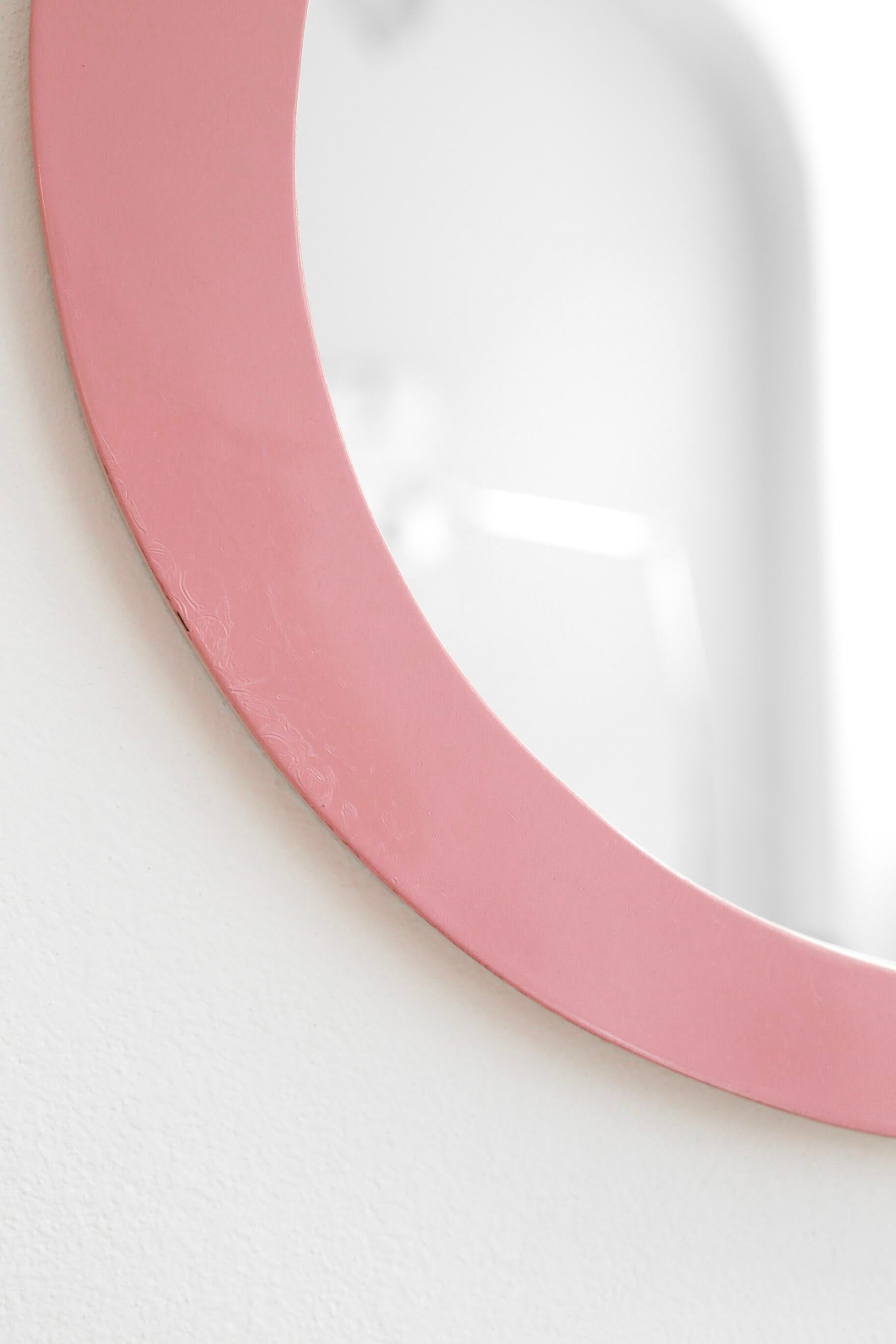 The mirror has an asymmetrical frame in pink. It comes from Italy and is in very nice vintage condition.