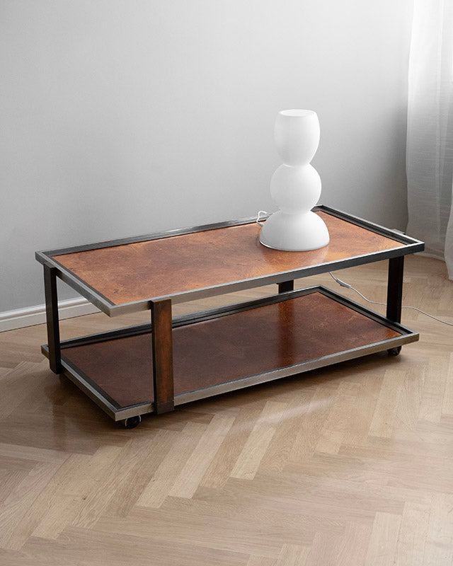 It has wheels, making it easy to move. The table can also be used as a side table or as a bar cart. In very good vintage condition, it has a subtle patina. The restorer has sensitively worked in minor imperfections in the wood, so the table has retained its original character.