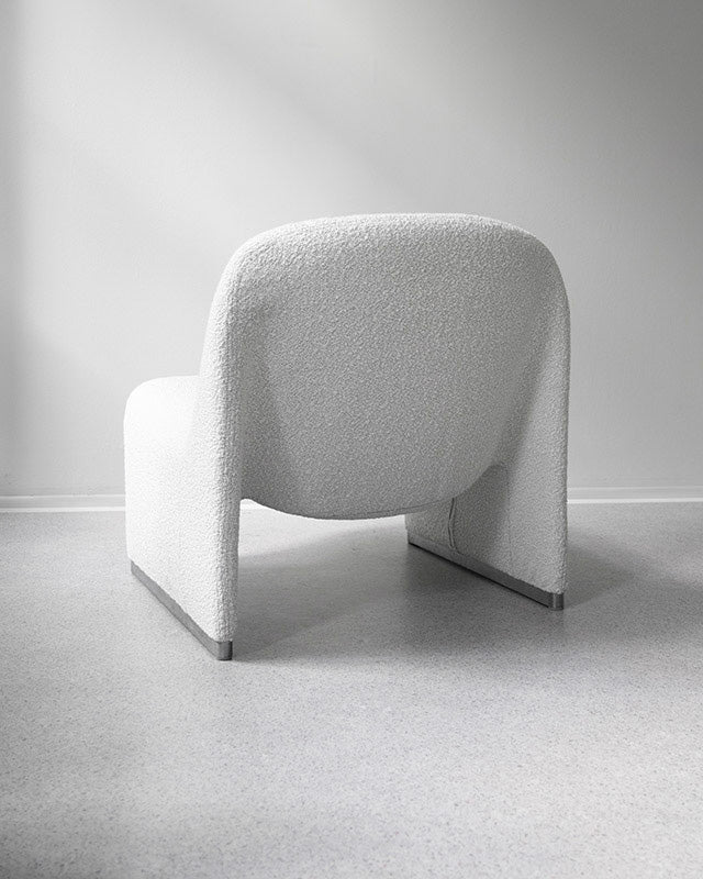 The very popular Alky chair was designed in the 1970s by the Italian Giancarlo Piretti. It was produced by the company Anonima Castelli in various colors, always playful and rich colors. The chair is rep and has a new fabric stretched over it.