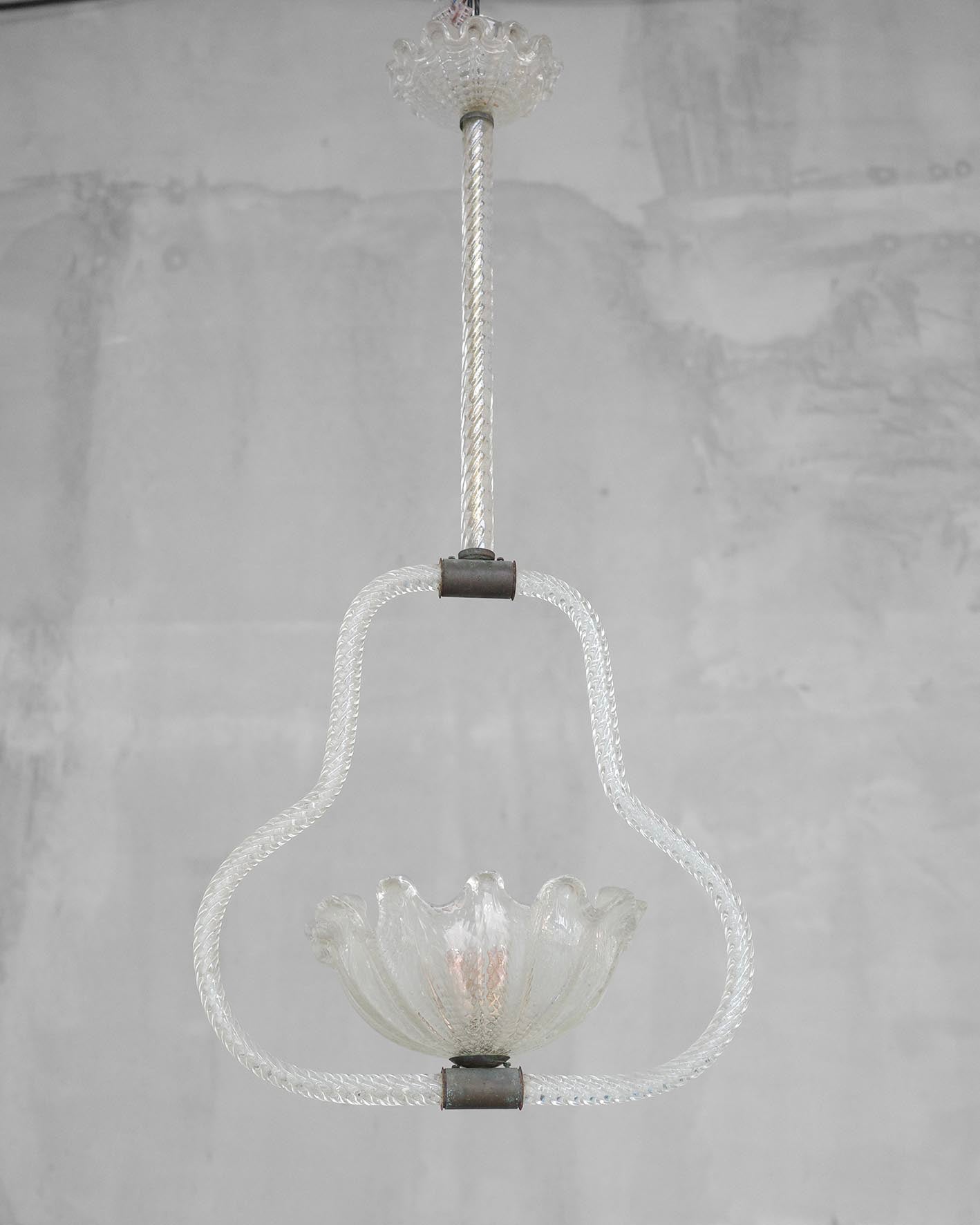 Luster v Art deco štýle z muránskeho skla vyrobený v Taliansku v 40. rokoch 20. storočia od Ercole Baroviera.Luster je prekáblovaný.