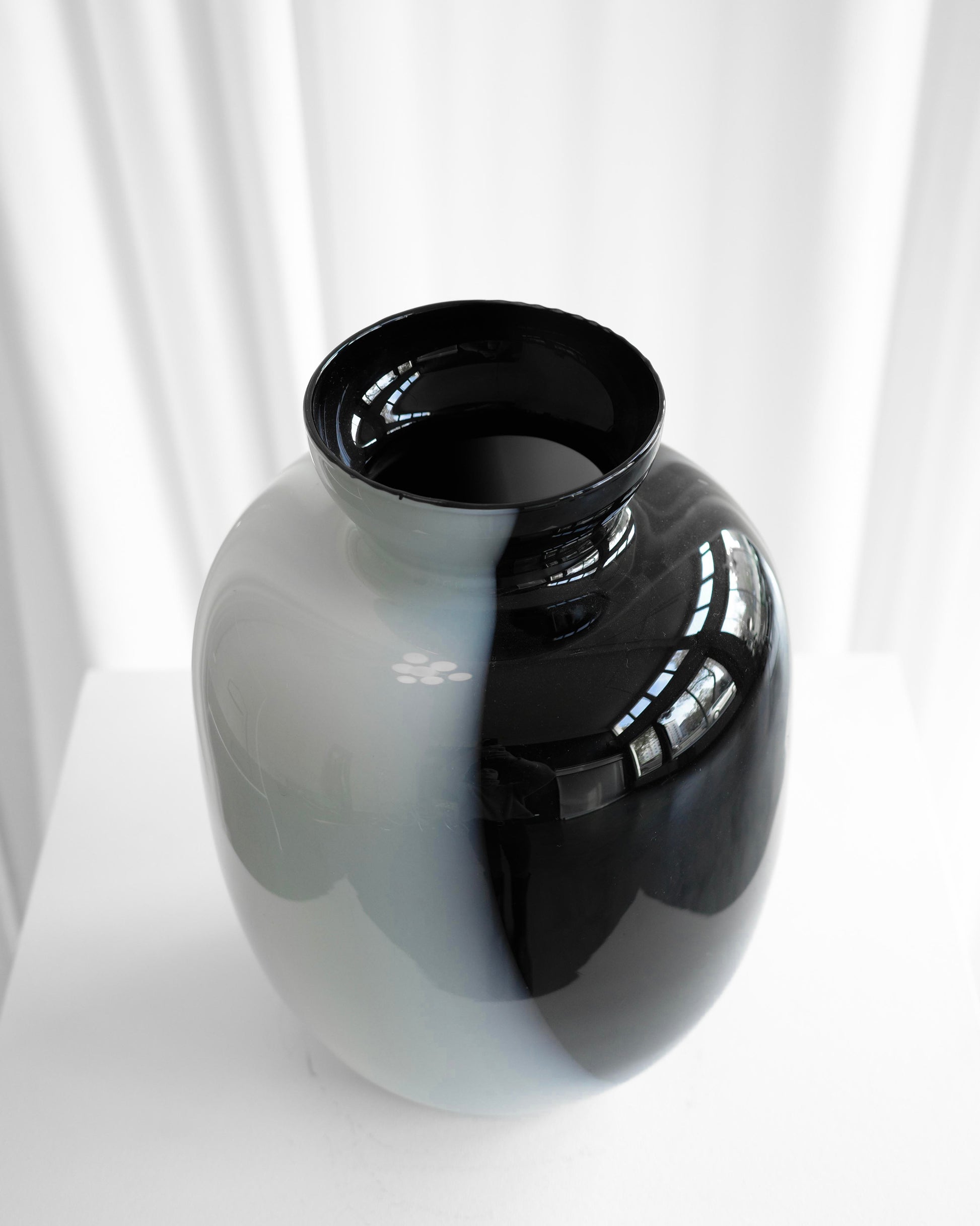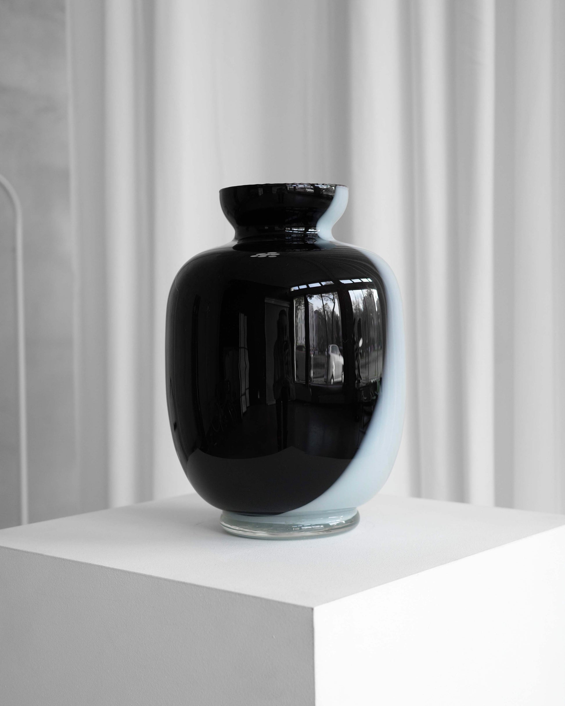 Väčšia váza je vyrobená zo skla, pravdepodobne muránskeho. Doviezli sme ju z Talianska. Je vo výbornom stave.