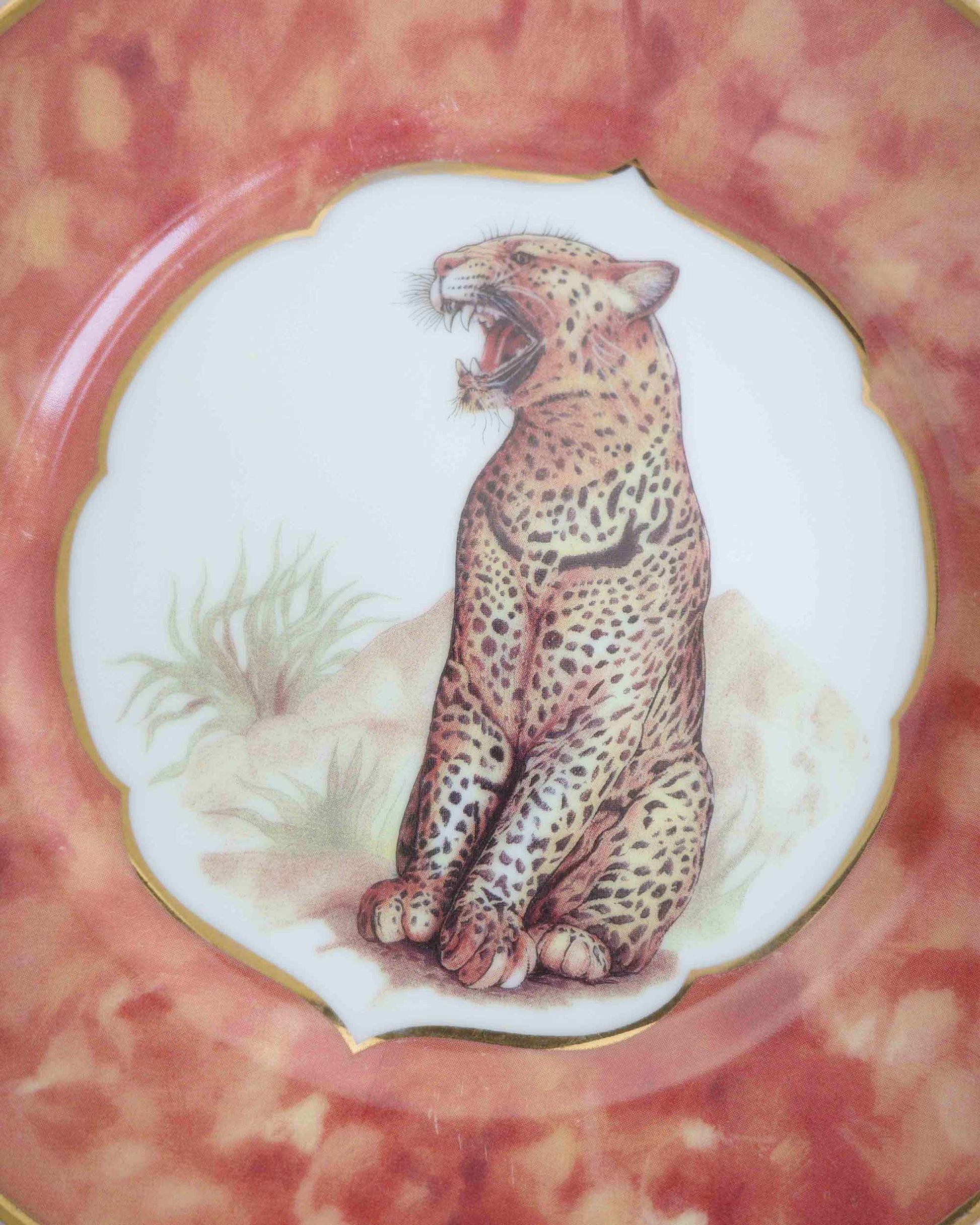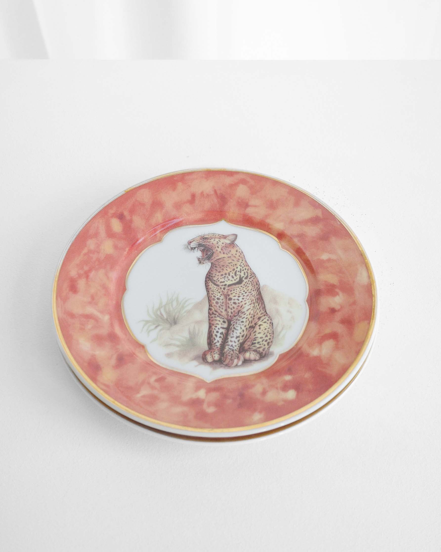 Súprava dvoch dezertných tanierov Henriette s motívom safari zvierat, zdobených zlatými detailami.