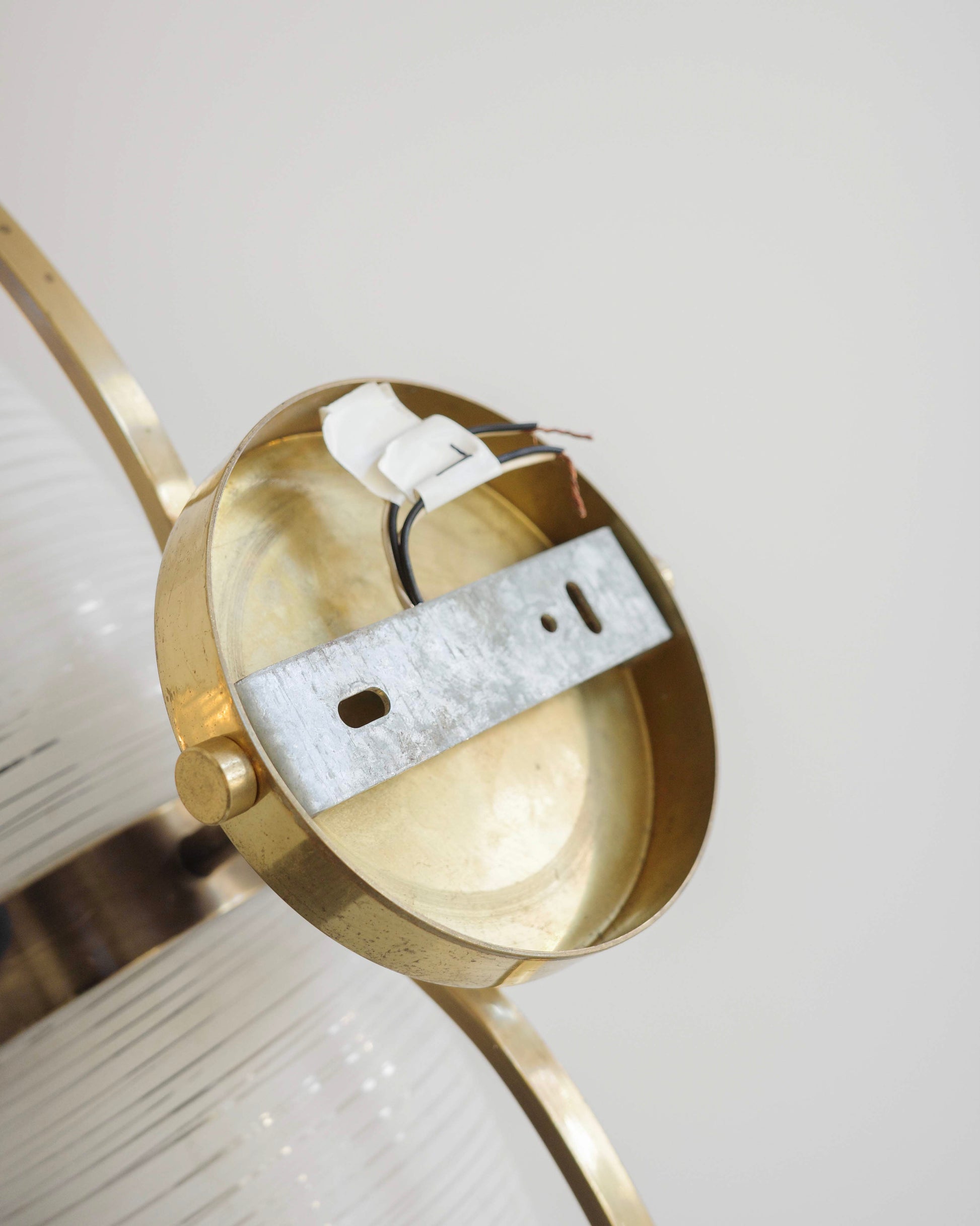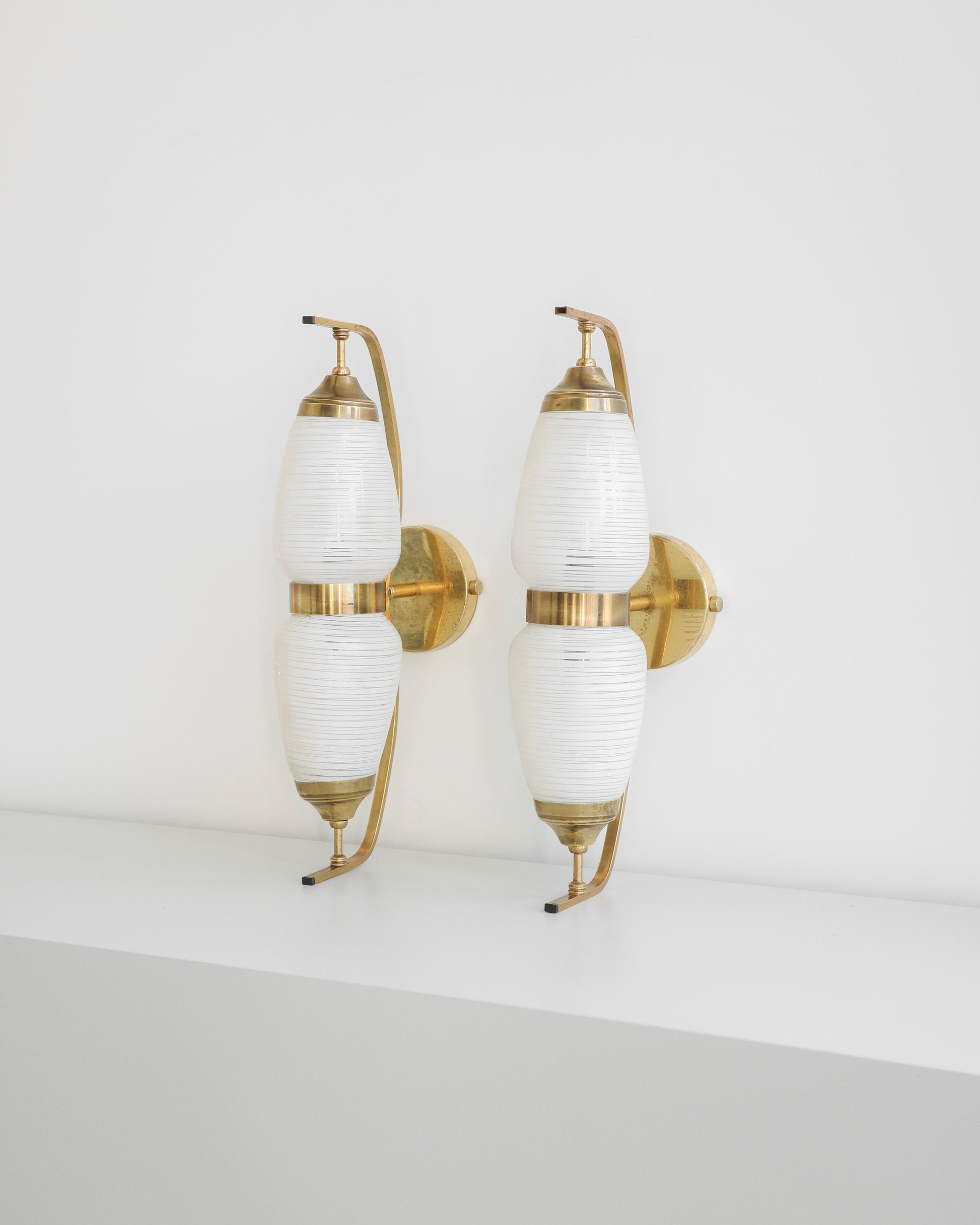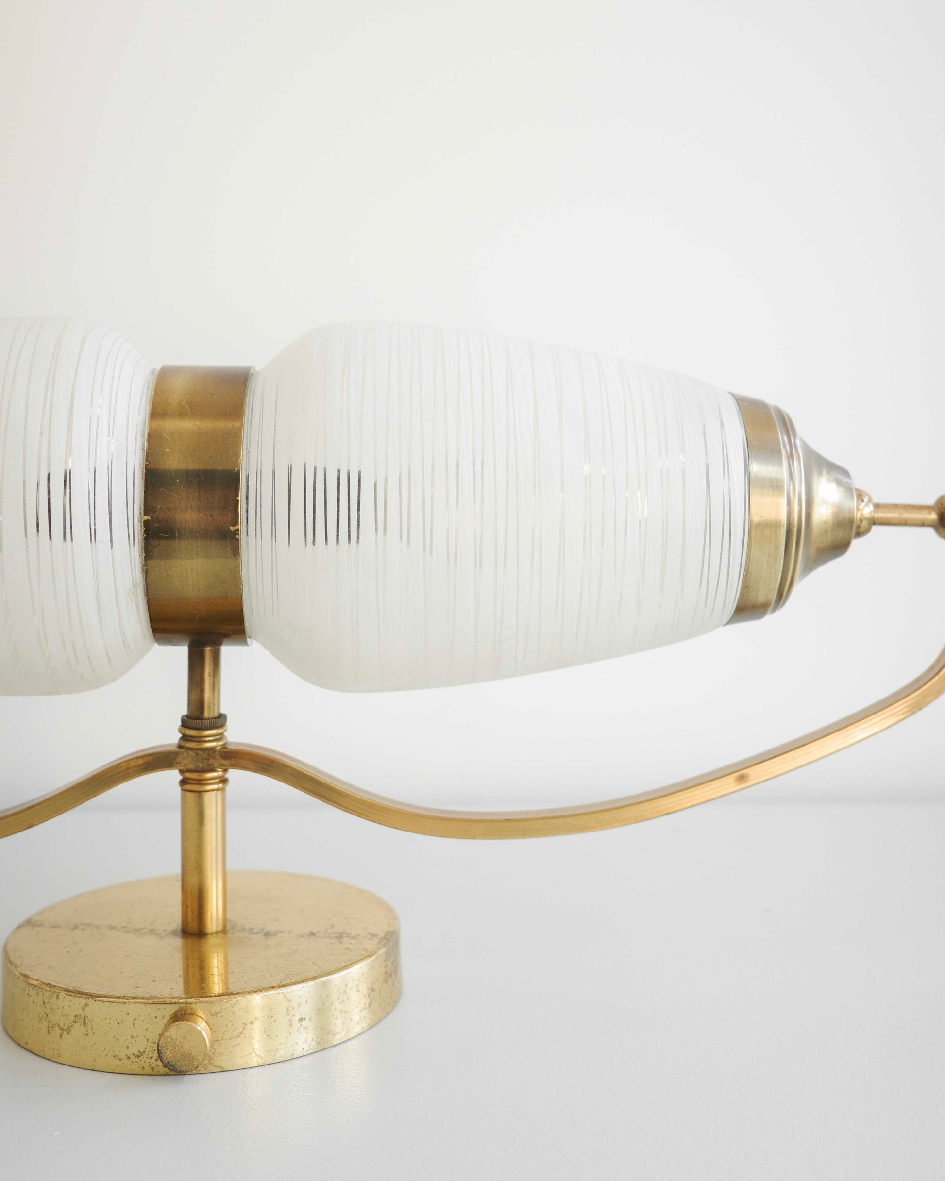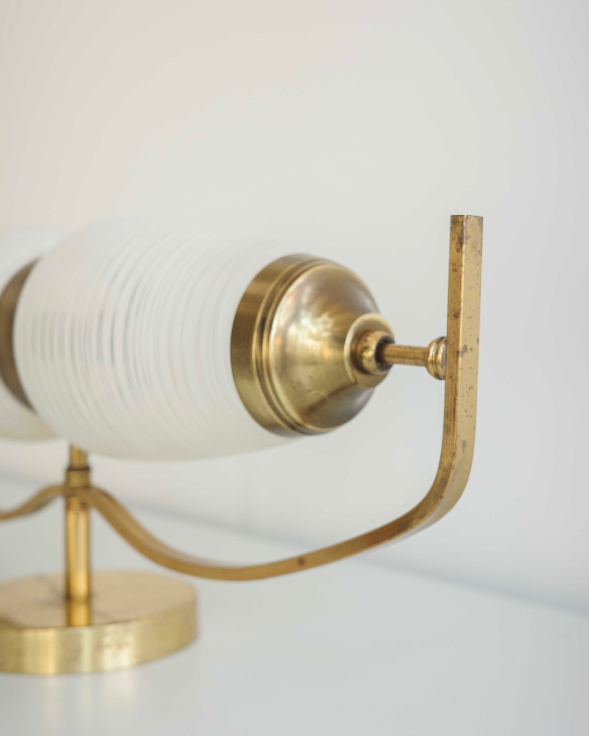 Lampy sme síce doviezli z Talianska, no ich pôvod je francúzsky. Konštrukcia je vyrobená je mosadze a každá z nich má dve tienidlá v bielej farbe, s jemným pásikom. Lampy sú vo výbornom stave, boli skontrolované elektrikárom a sú plne funkčné.