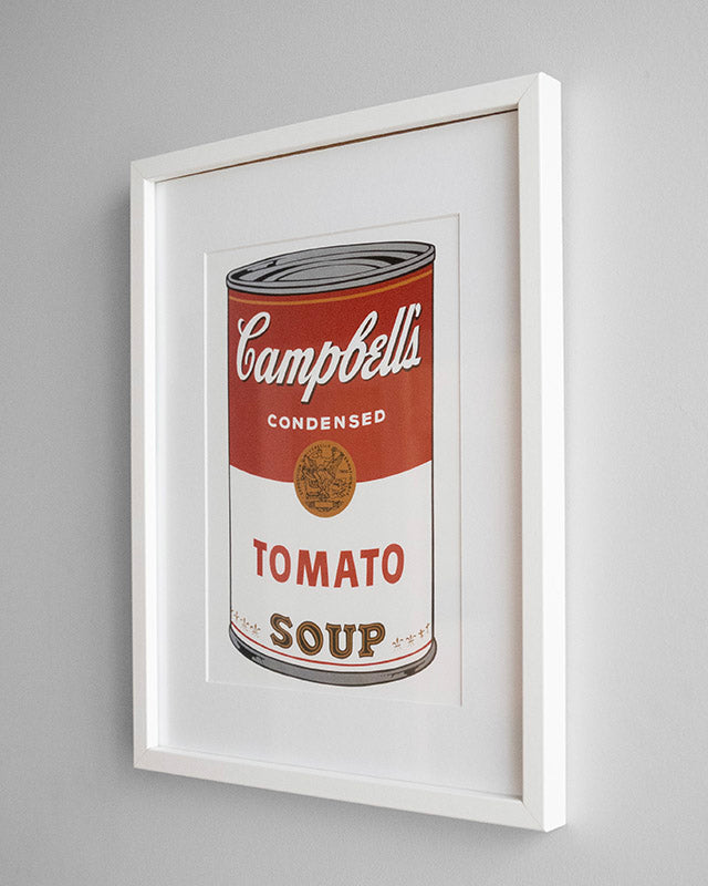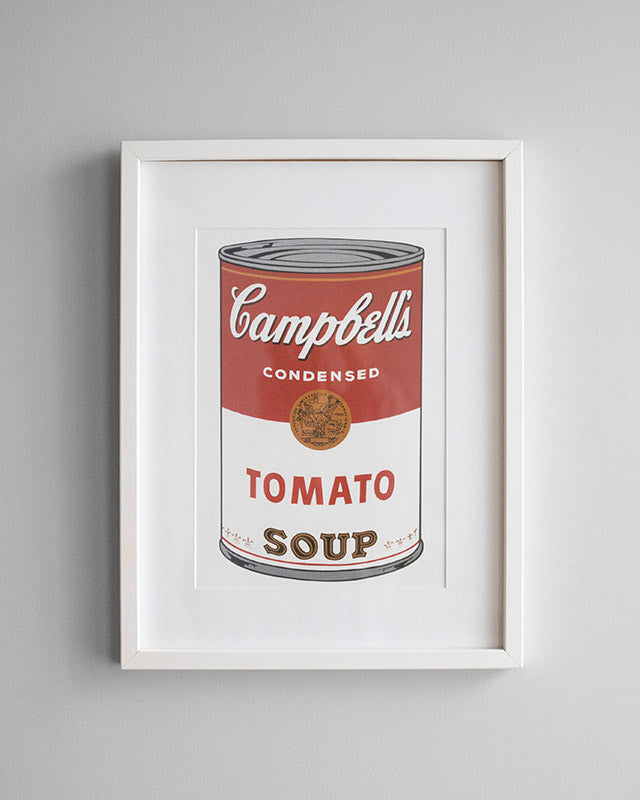Zarámovaná moderná reprodukcia ikonického diela Campbell’s Soup Can (Tomato) od Andyho Warhola, pôvodne vytvoreného v roku 1962 ako súčasť jeho zásadnej Pop Art série. Pracoval s témami masovej výroby a konzumerizmu, keď z bežného predmetu urobili umelecký objekt. Výrazný kúsok s jasným odkazom na dejiny Pop Artu.