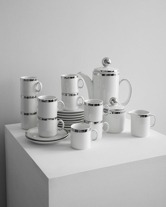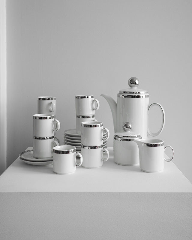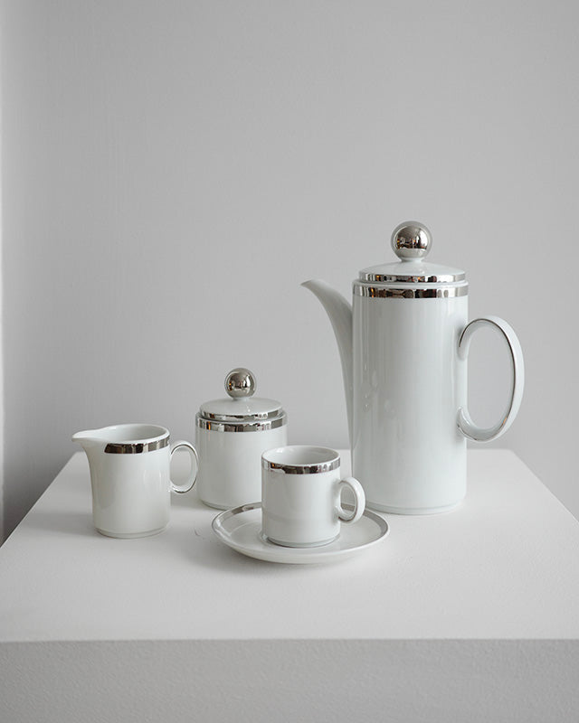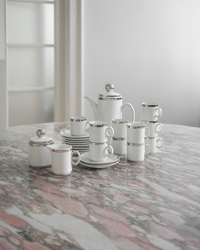 Elegantná vintage súprava na kávu z jemného porcelánu s platinovým lemovaním, vyrobená značkou Winterling Schwarzenbach, Bavaria.