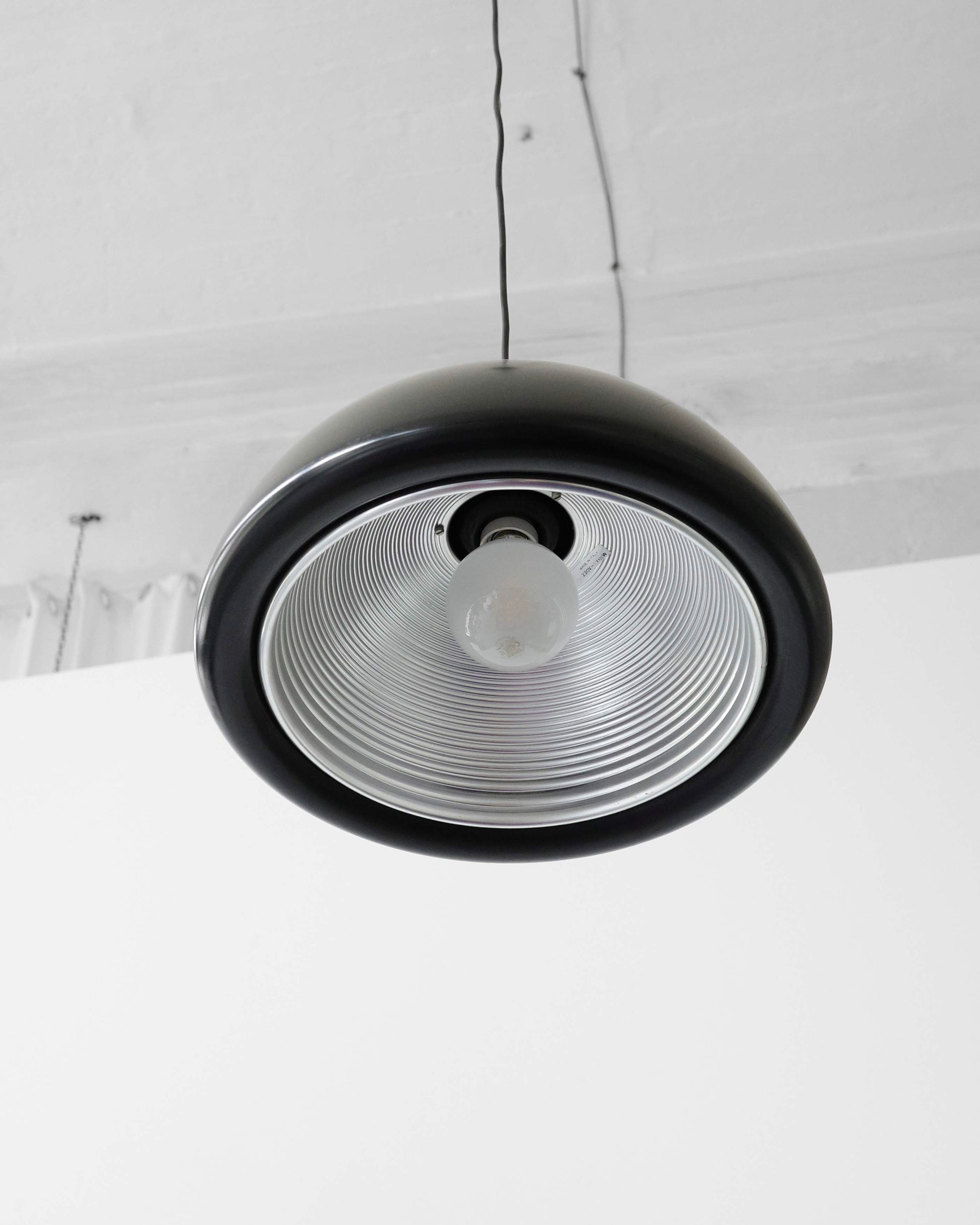 Lampu sme doviezli z Talianska. Je vyrobená z kovu. Vo vrchnej časti má čiernu farbu a vo vnútornej časti striebornú. Vnútorná strana je jemne vlnitá. Lampa je vo výbornom stave, bola skontrolovaná elektrikárom. Uvedená výška sa dá upraviť na želanie.