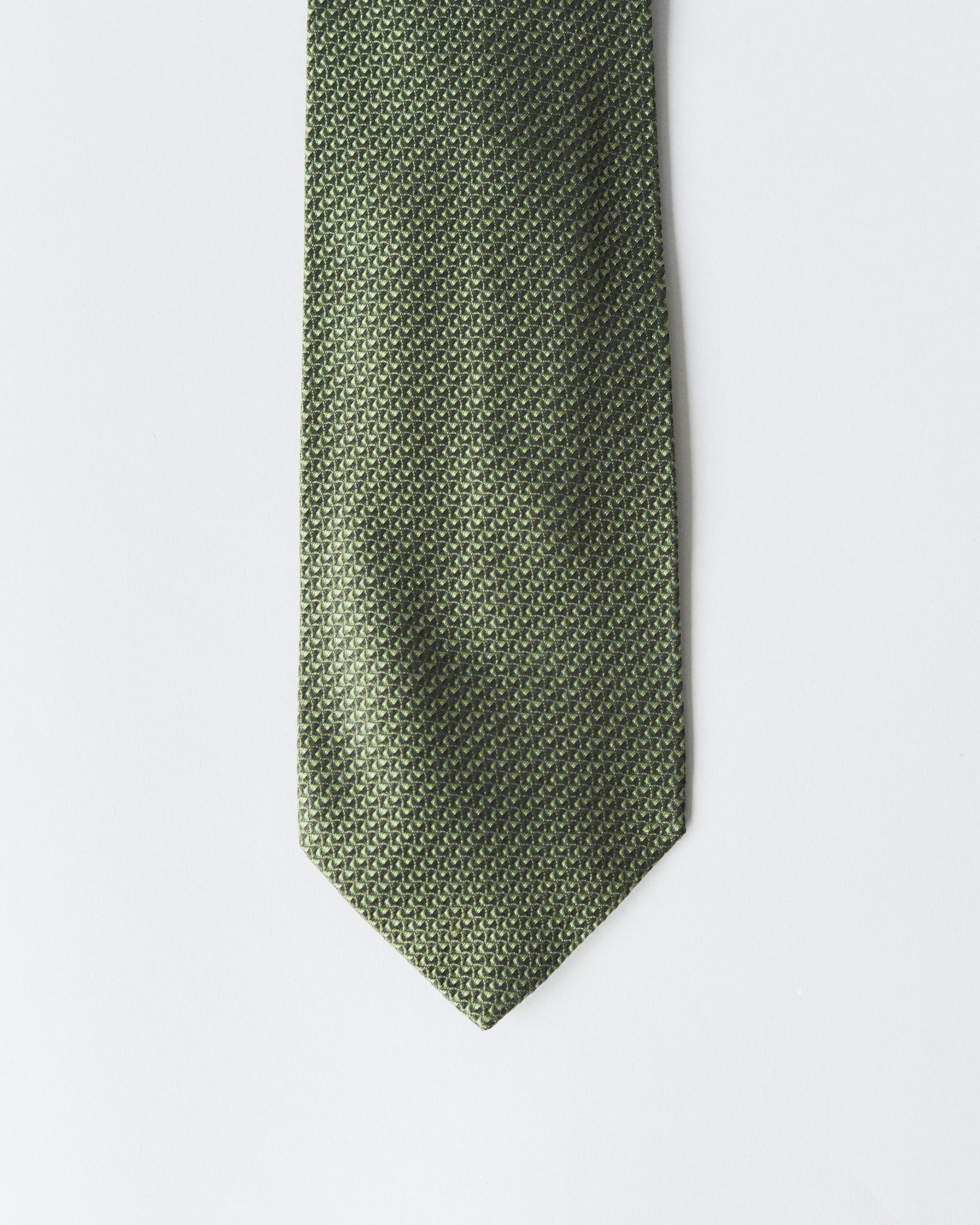 Hodvábna kravata pochádza z dielne značky Donna Karan a má krásnu zelenú farbu a jemný vzor tón v tóne. Značená je v zadnej časti. 70