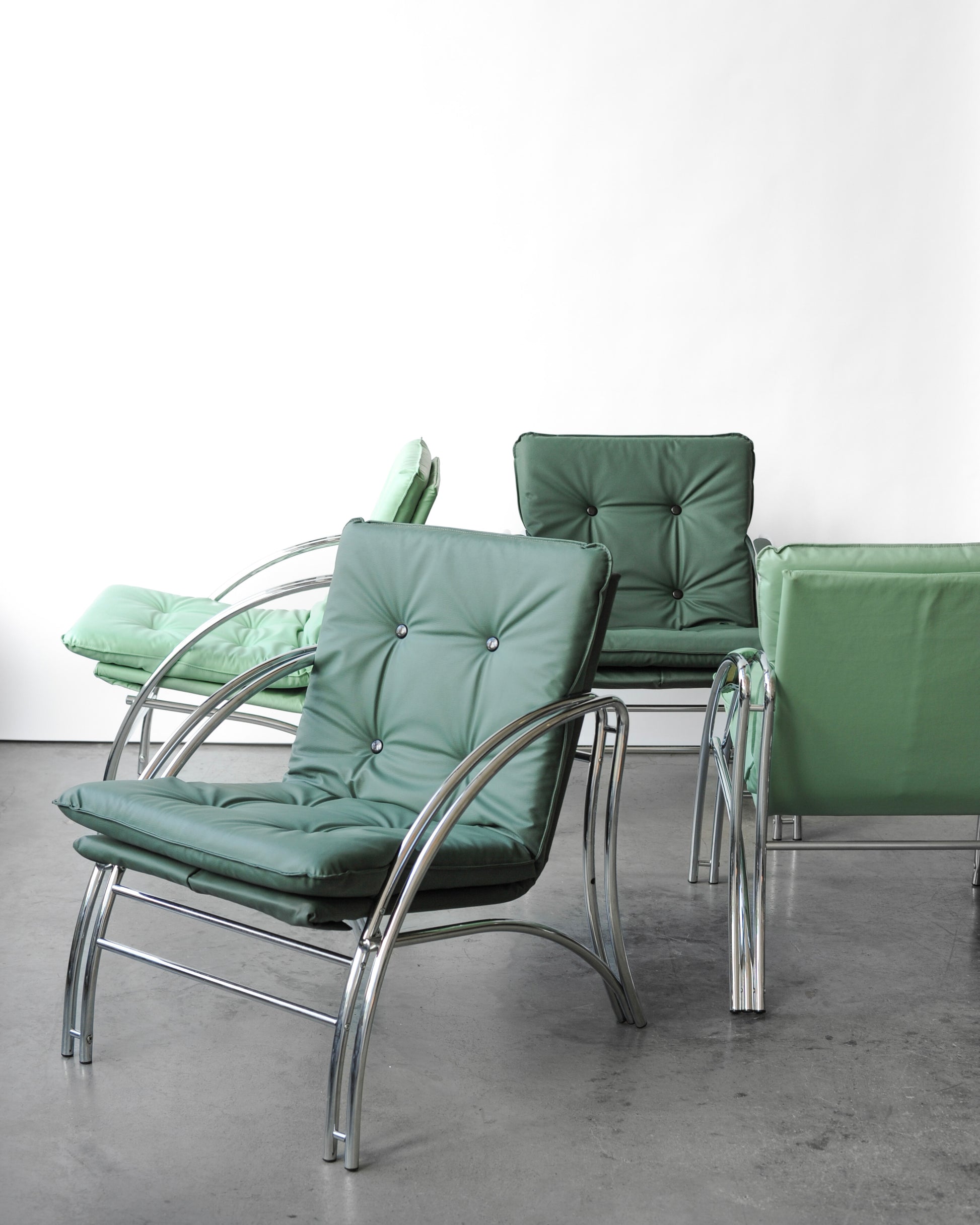 Kreslo má konštrukciu z ohýbaného chrómu a poťah z eko kože, ktorá sa veľmi dobre udržuje. Sú k dispozícii dve farby poťahu - bledozelená a tmavozelená. Kreslá neboli používané, iba skladovane. Vhodné aj do gastro prevádzky. Zľavnená cena platí na kusy, ktoré nie sú zmontované. Dostanete sedák, podsedák a krabicu s celou konštrukciou, ktoré treba zložiť.