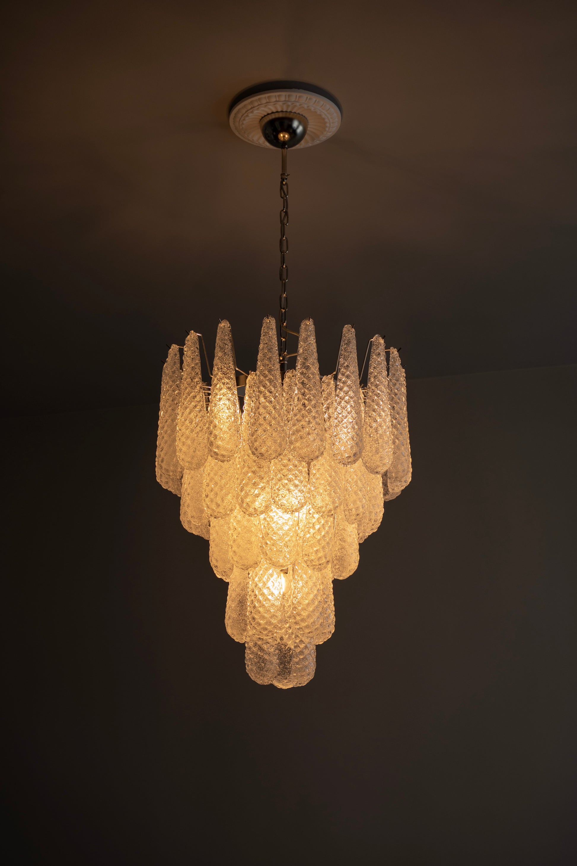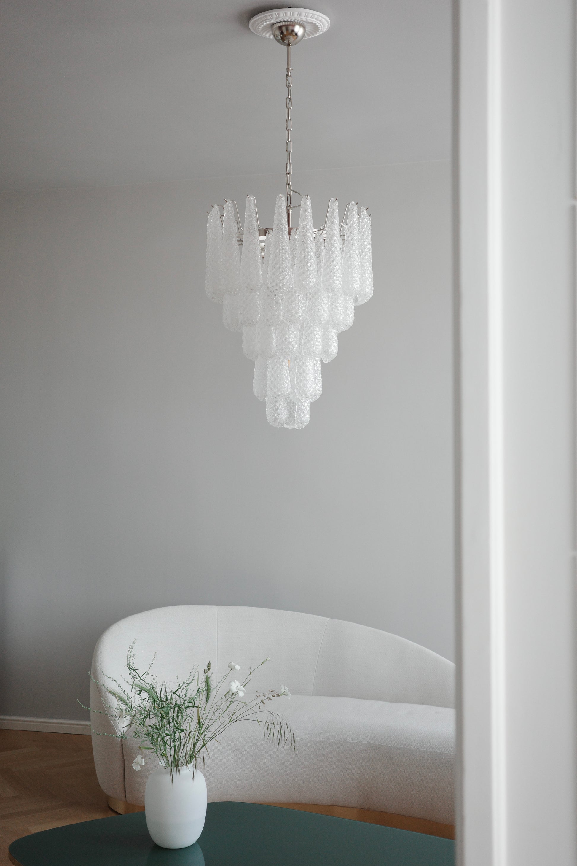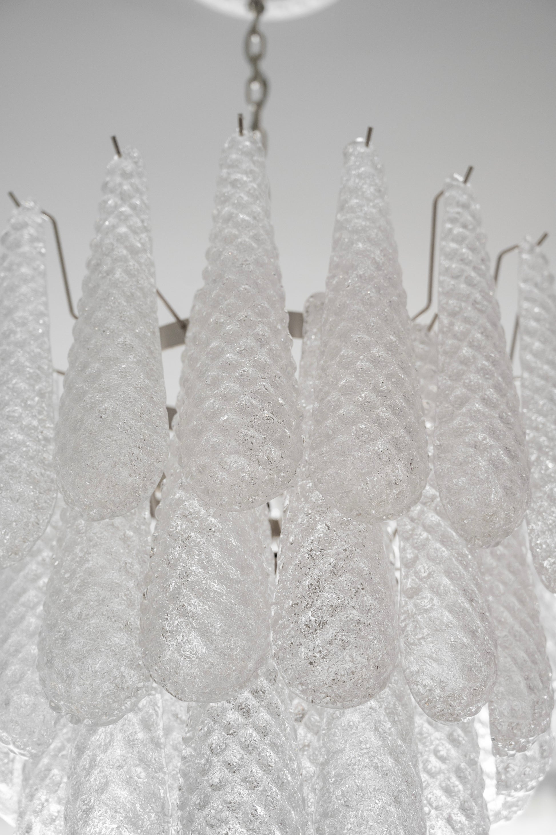 Luster má novú kovovú konštrukciu aj kabeláž, na ktorej sú zavesené lupene vyrobené z muránskeho skla. Lupene sú z transparentného skla v tvare kvapiek. Na povrchu majú štruktúru a preto má luster bielu farbu.