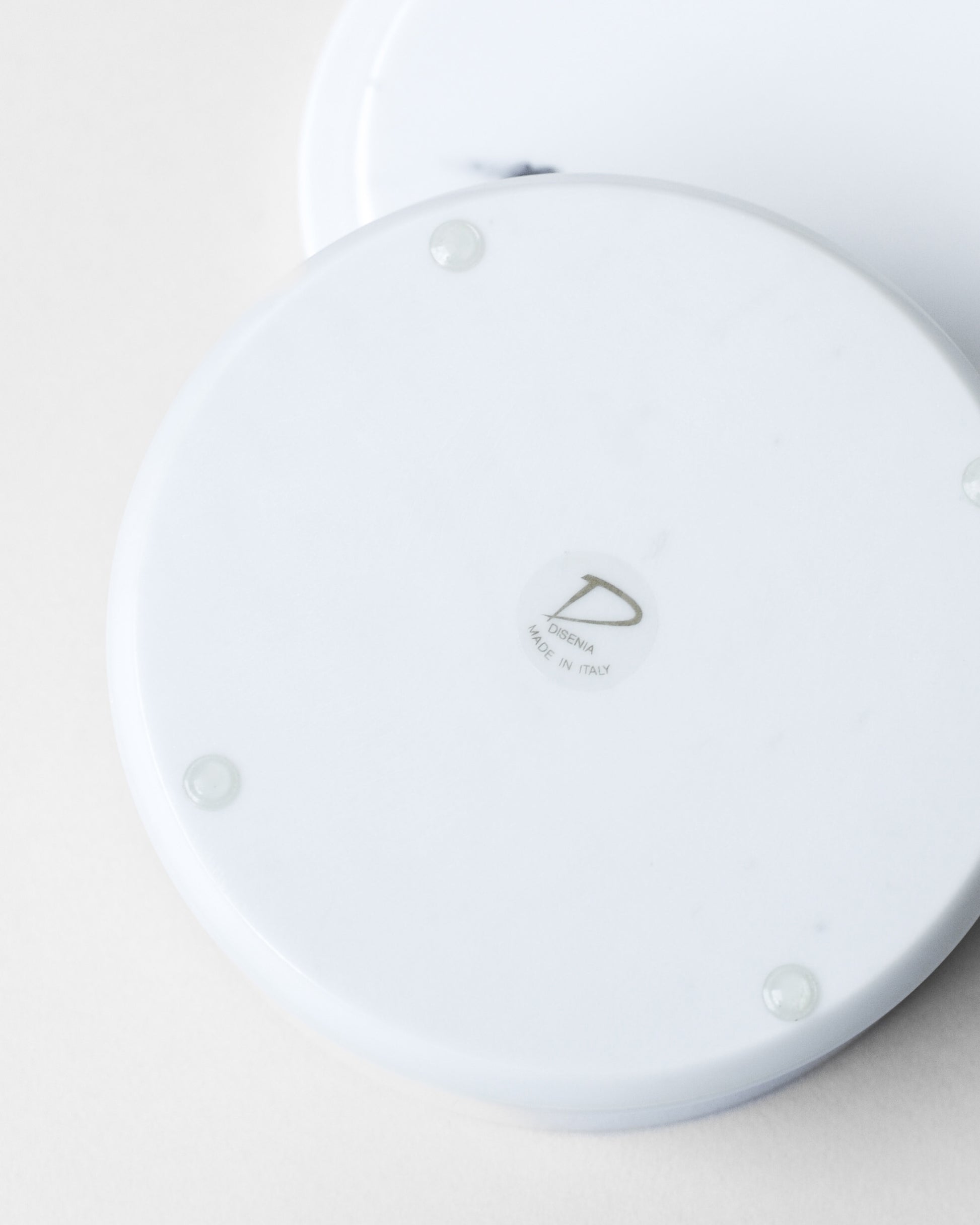 Okrúhla šperkovnica je vyrobená z bieleho carrara mramoru, je vo výbornom stave a pochádza z Talianska.