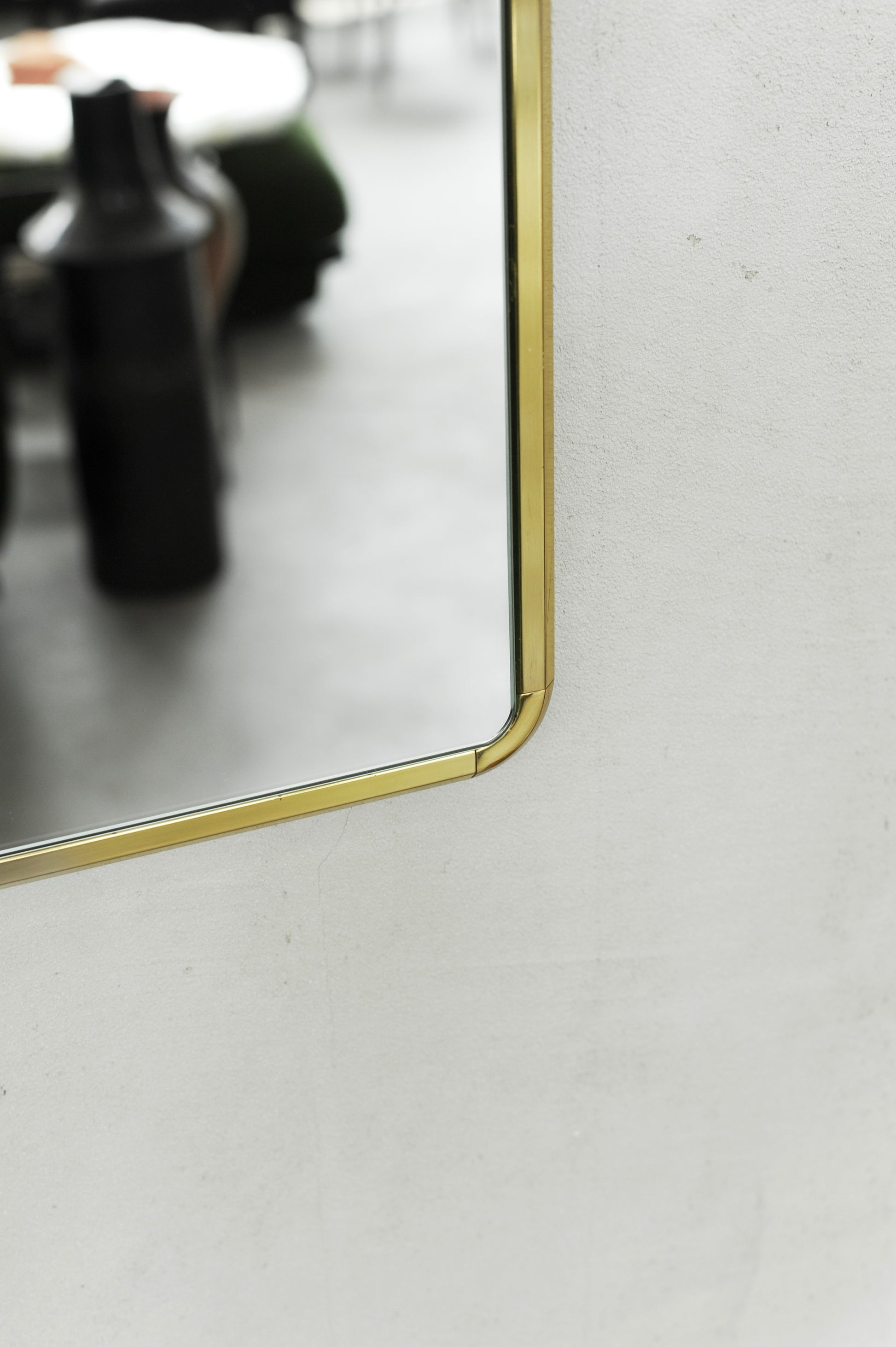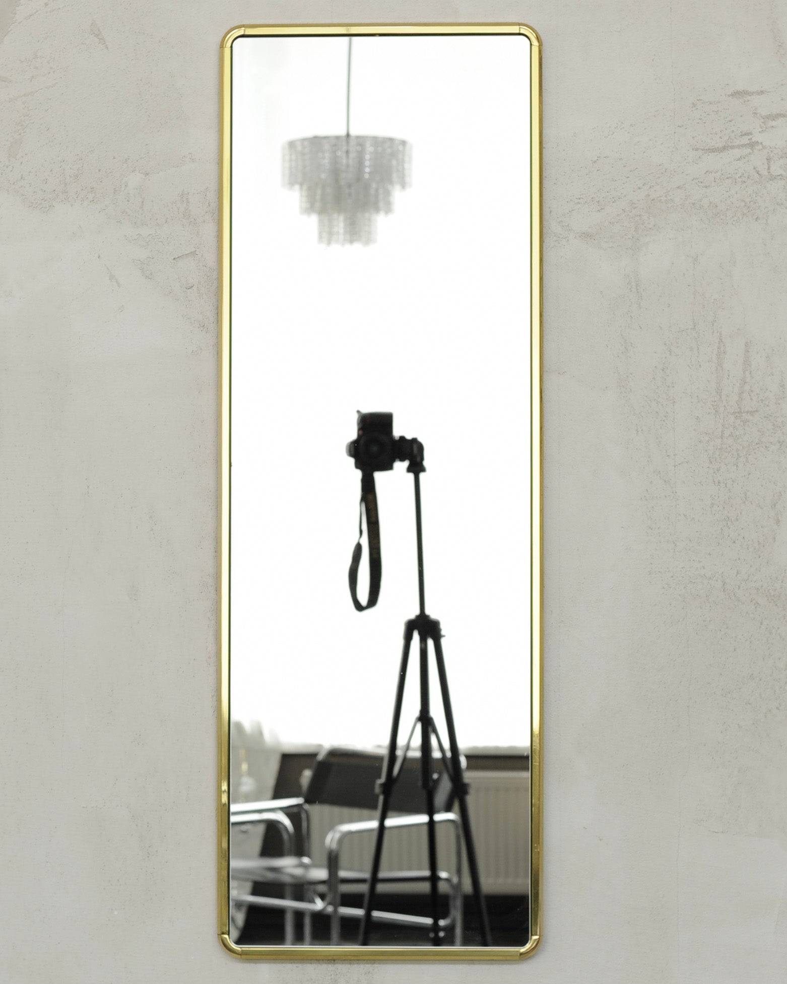 Vysoké zrkadlo v tvare obdĺžnika má mosadzný rám. Vhodné napríklad do chodby. Pochádza z Talianska.