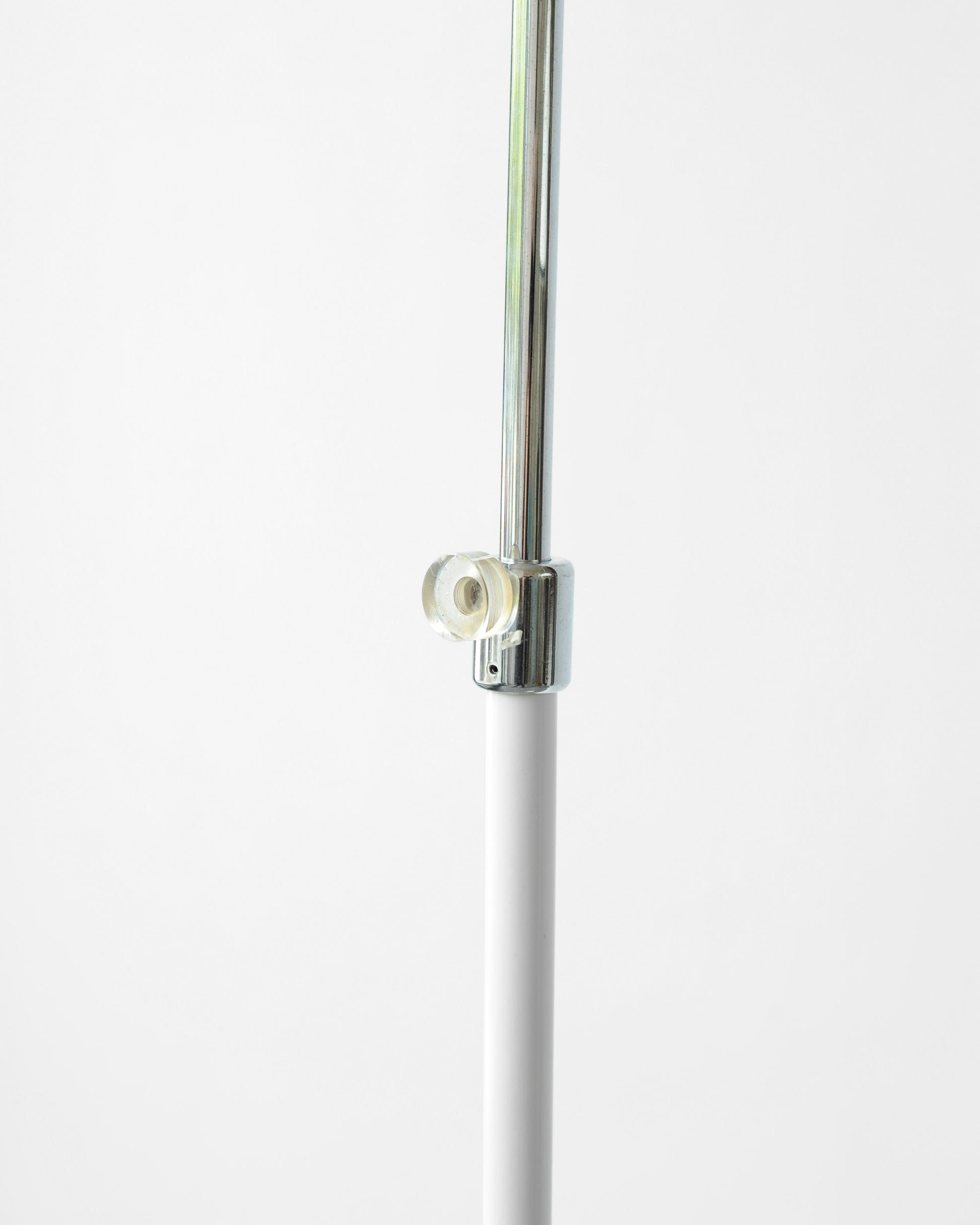 Talianska lampa je veľmi variabilná. Výška tienidla sa dá nastavovať a rovnako aj otáčať ju vo vodorovnej osi. Vymenili sme jej kabeláž a osadili nový nášľapný vypínač. Je vyrobená z kovu, patina primeraná veku je viditeľná na kove v spodnej časti.