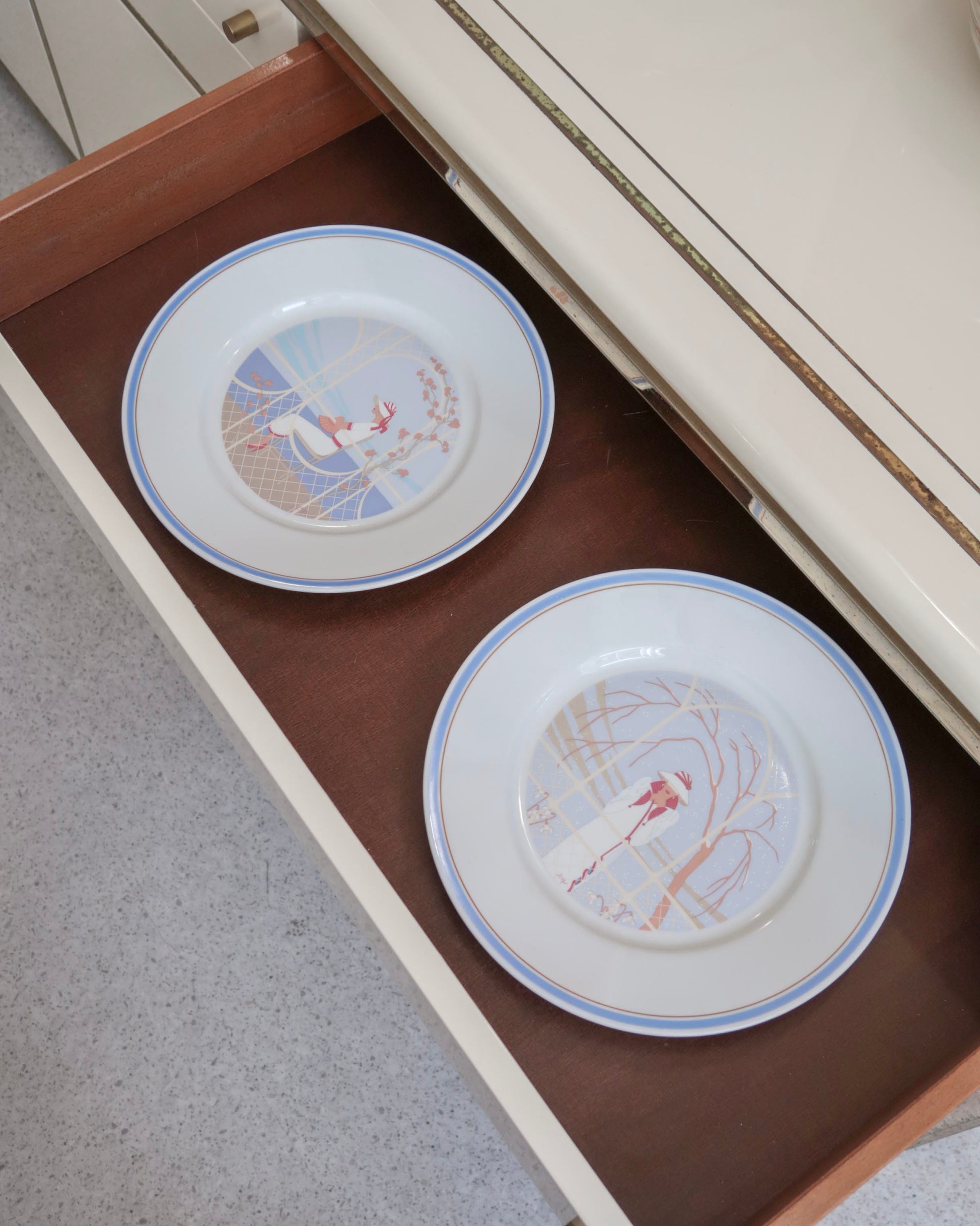 Set štyroch tanierov v art deco štýle pochádza z dielne známej talianskej porcelánky Richard Ginori. Na každom z nich je vyobrazené jedno ročné obdobie. Môžu sa používať ako dekoračné alebo jedálenské taniere.