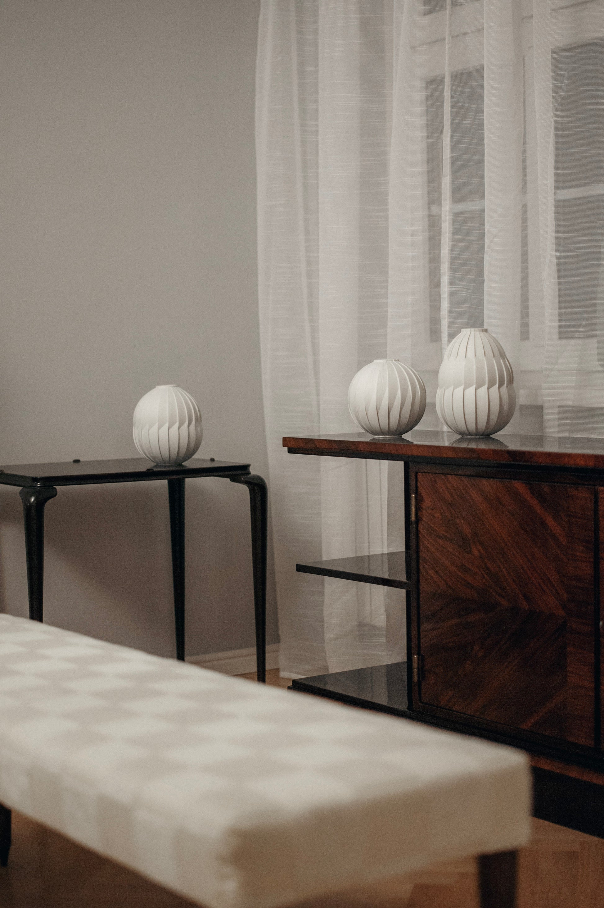 Vázy zaujmú svojím charakteristickým dizajnom pre sériu Segment. Neglazovaná textúra odhaľuje pôvab procesu ručného odlievania a autorského prístupu k tvorbe formy. Glazovaný vnútorný povrch vázy uľahčuje jej praktické využitie, zatiaľ čo vonkajšia úprava zdôrazňuje autentickosť a surovú krásu materiálu.