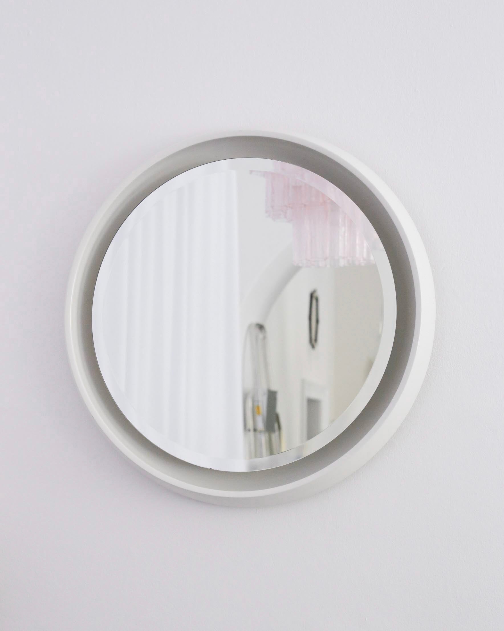 Zrkadlo s dreveným rámom pochádza z Talianska. Zrkadlo má po obvode efektnú fazetu. Zrkadlo má jemnú patinu na ráme.