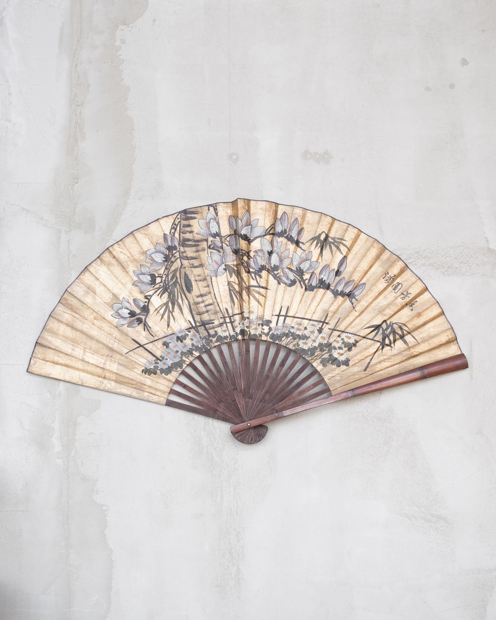 Vejár je vhodný ako dekorácia na stenu. Je ručne maľovaný a pochádza cca z 50tych rokov. Má bambusovú konštrukciu.