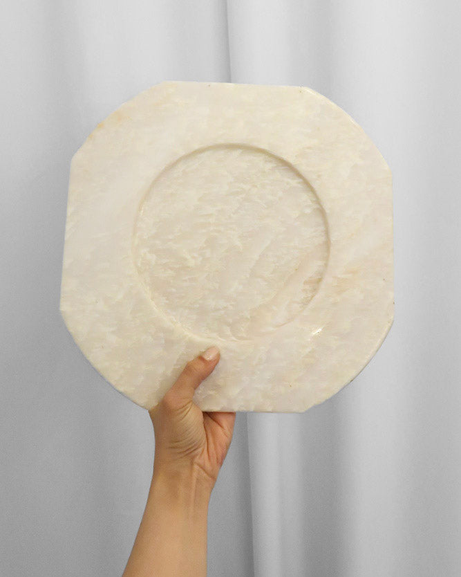 Biely/bežový mramorový tanier, Taliansko. Môže slúžiť ako tanier na ovocie, servírovanie, dekoráciu alebo pod sviečky.