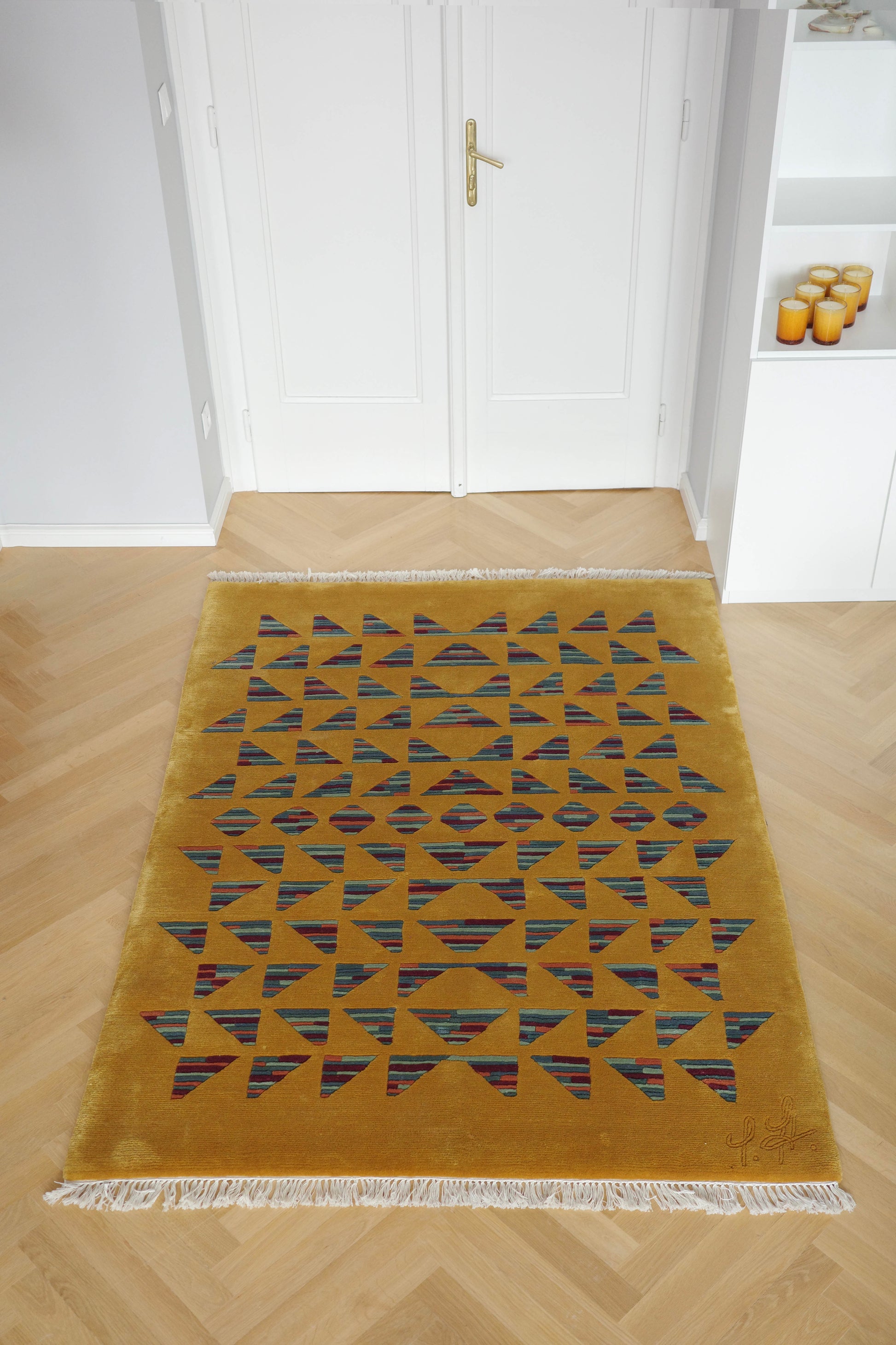 Koberec zo 100% novozélandskej vlny bol vyrobený v Tibete. Dizajnér má iniciály vyrazené na jednom okraji, jedná sa o autorský kúsok.