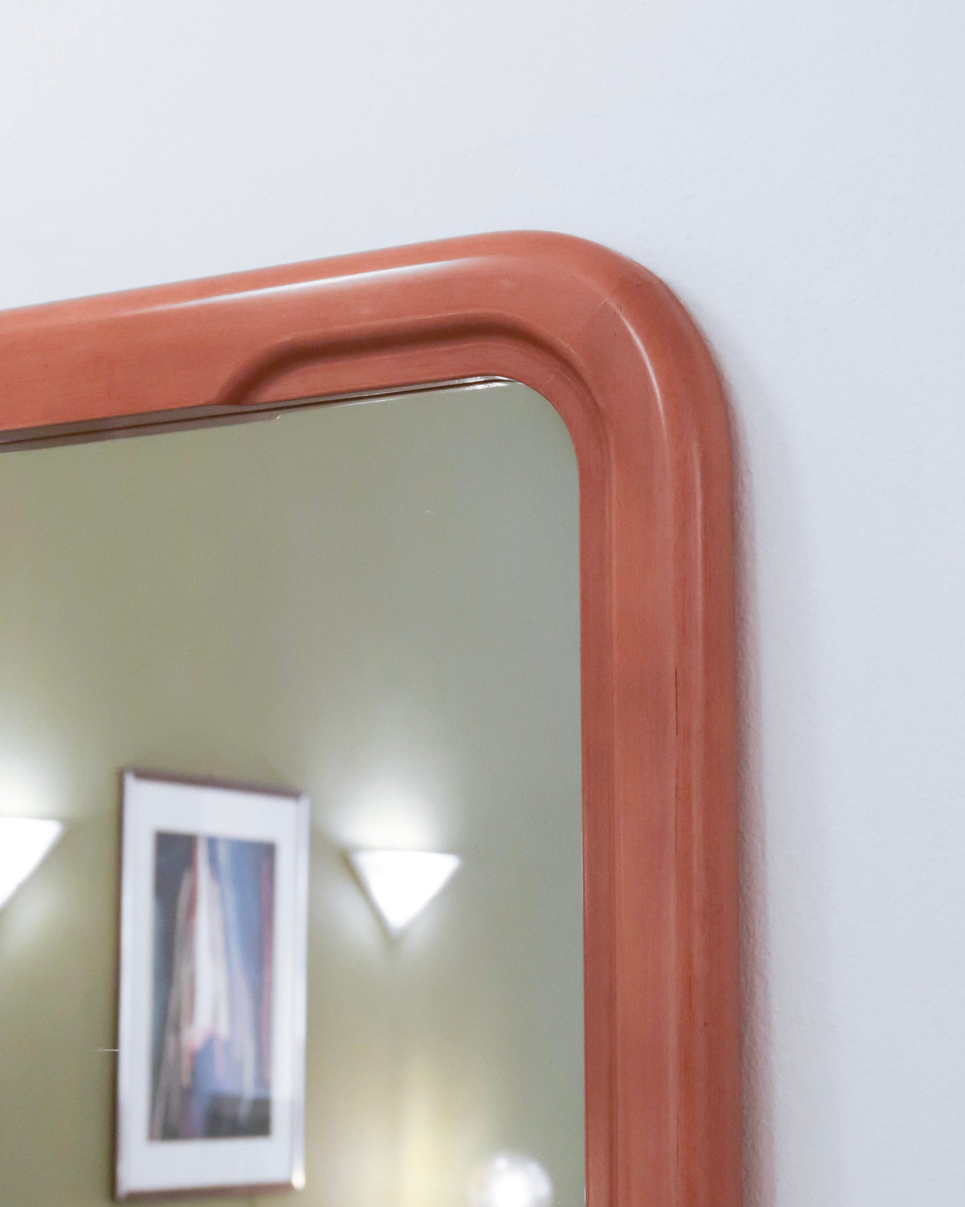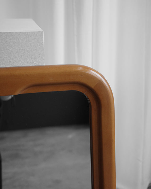 Zrkadlo sme našli počas našich ciest v Taliansku. Predpokladáme, že pochádza z 80tych rokov. Zrkadlo je veľké a má krásne zaoblené organické tvary. Rám je vyrobený z dreva, má jemnú patinu.