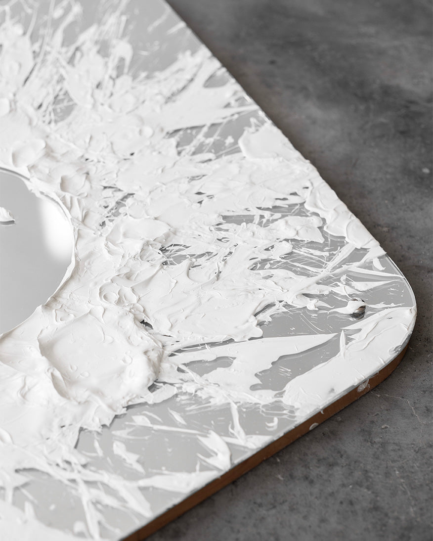 Vintage zrkadlo dotvorila umelkyňa Evgeniia Kazarezova, tvoriaca pod značkou ZHENI. Starý vintage kus, nespĺňajúci kritériá dnešného sveta ženúceho sa za dokonalosťou, bol pretvorený. Nie však renováciou jeho rámu alebo vyrezaním nového skla, ako to zvyčajne robíme. Ale nanesením niekoľkých vrstiev materiálu pod taktovkou Evgeniie. Zrkadlá už nie su len zrkadlami ale aj umeleckými objektmi, solitérmi v interiéri. Koncept vytvorenia série piatich zrkadiel vznikol pri vzájomnej debate Evgeniie a Vlaďy Ilavskej, zakladateľke štúdia LAVISH.